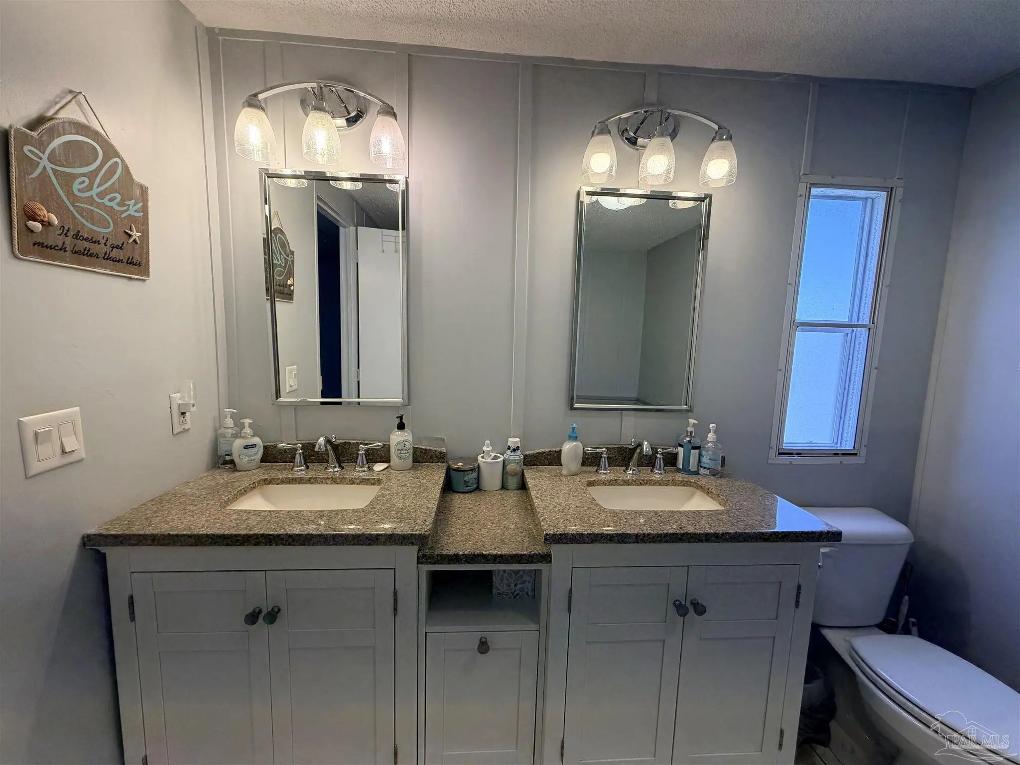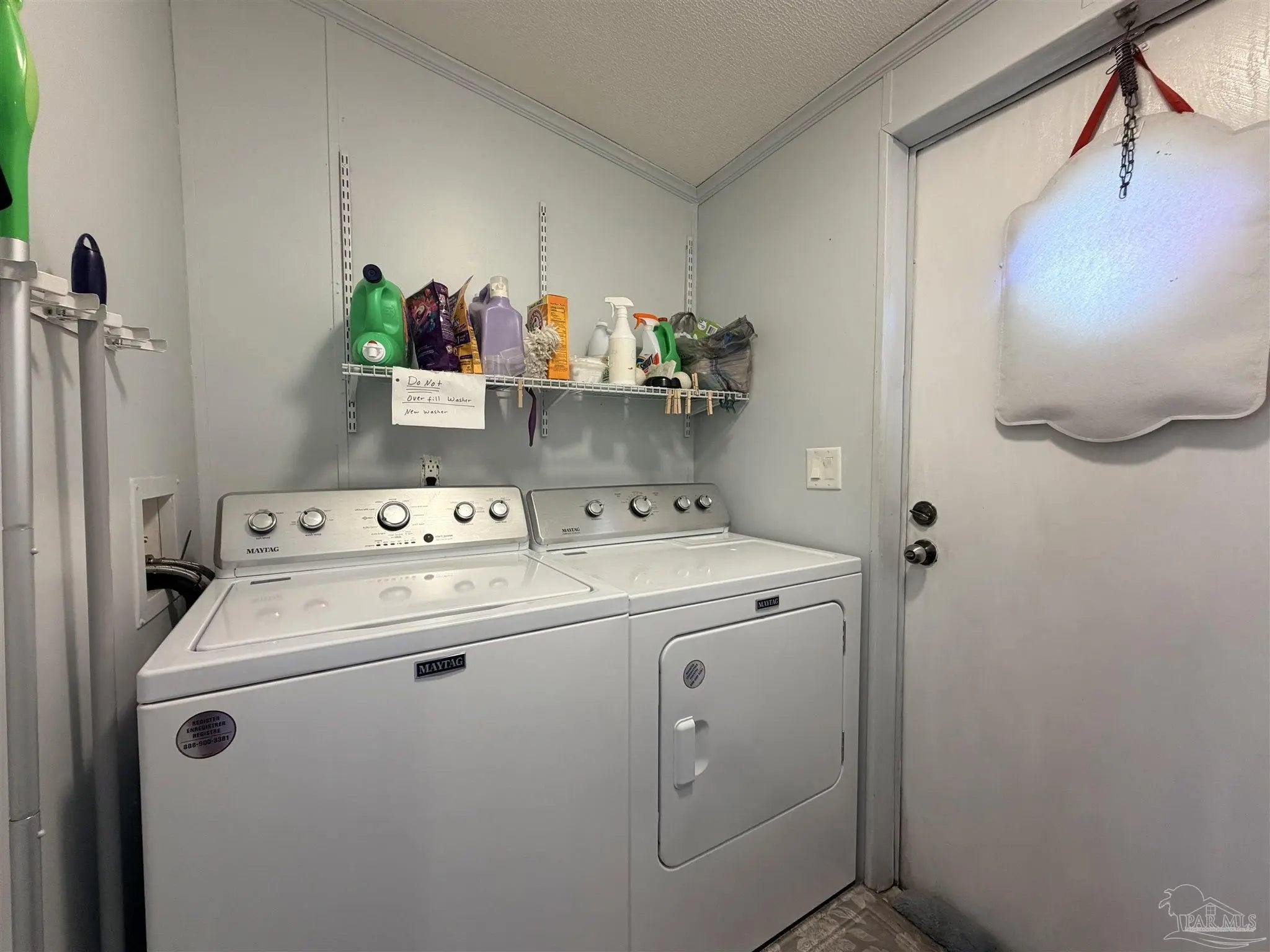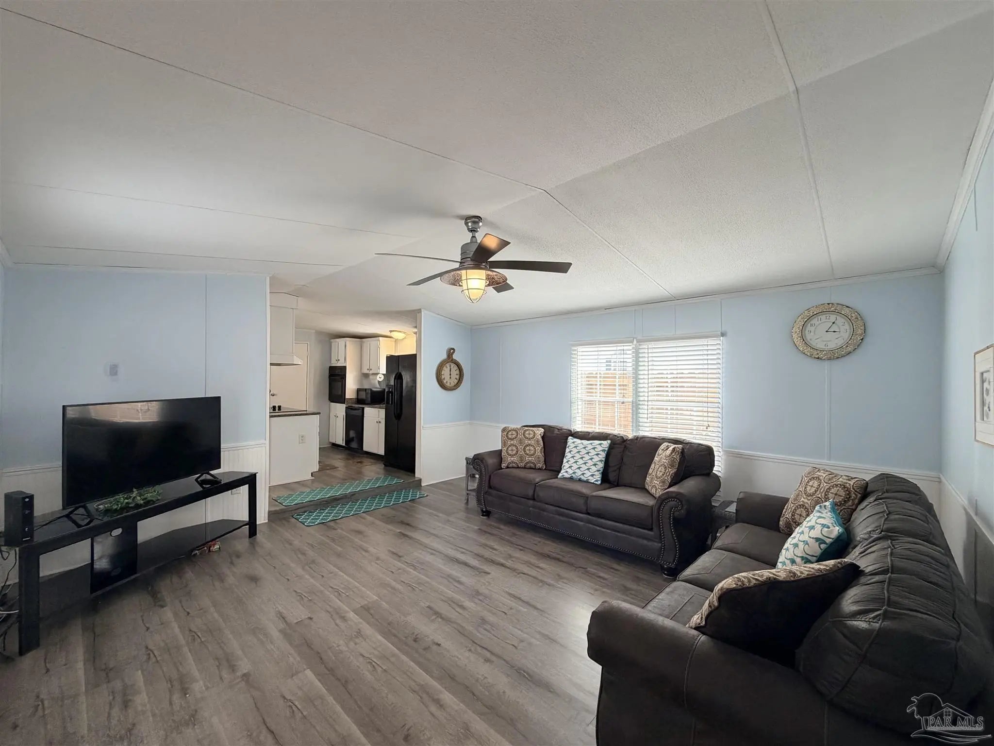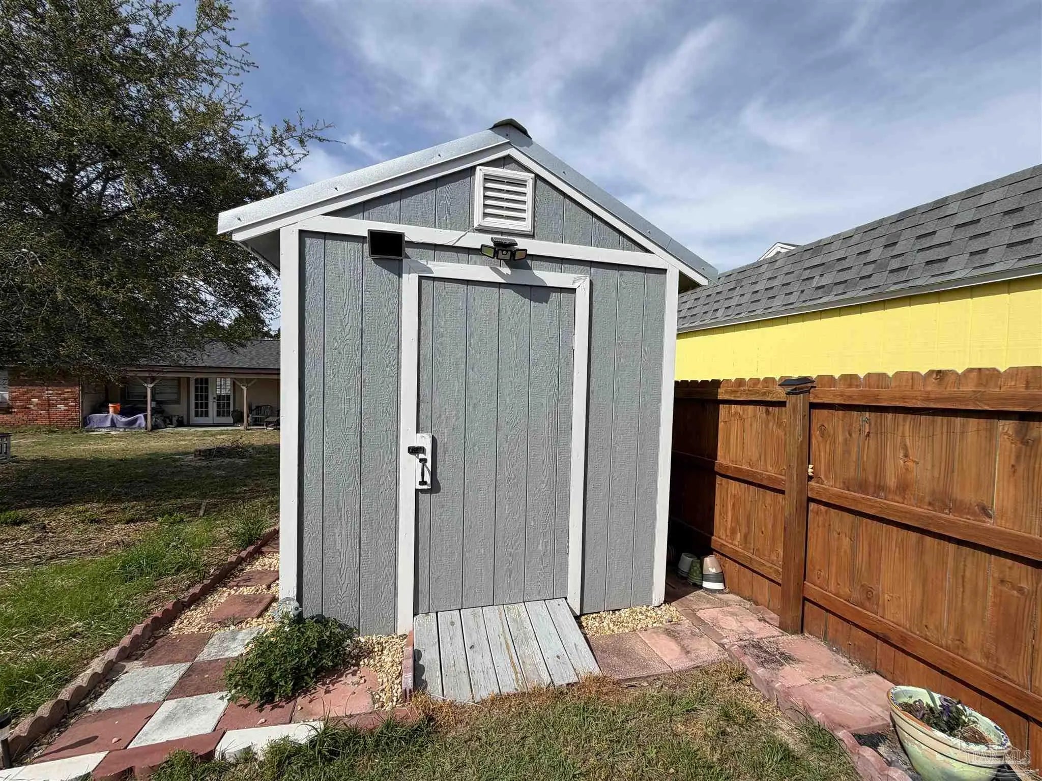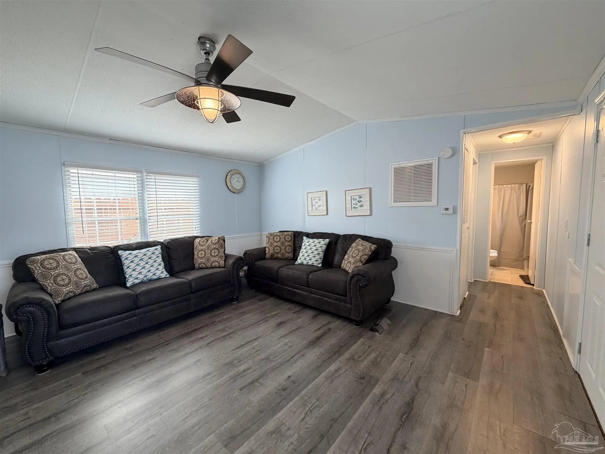 This charming home is just a short drive to Perdido Key and the white sandy beaches and beautiful GULF. It is close to the shopping centers, parks, tennis courts and more. The home has ample amount of parking and is located at the end of a cul-de-sac. The home has a large covered front deck perfect for relaxing after a long day at the beach. As you enter the home you will notice the vaulted ceilings and open floor plan plus lots of natural light through the storm door. The home has luxury tile flooring in the main rooms plus the additional bedroom. This home can easily sleep 6 plus people. The additional bedroom has lots of privacy down a hallway with a full bathroom and granite vanity. The spacious kitchen has nice flow through with a large island with flat stovetop. There is a reach in pantry plus lots of counterspace and cabinets. The kitchen countertops are a beautiful coastal looking granite. The dining room is off the kitchen perfect for family and friends to gather. The laundry room is inside the home with lots of shelving plenty of space for utility brooms and more. The oversized primary bedroom has nice closet space. There is a large soaking bathtub plus a walk in shower. The primary bathroom has beautiful double vanity with granite and plenty of drawers. The home has a back deck area off the laundry room with an 8ft. privacy fence plus an outdoor shower area and small gate to access the front yard. The front parking area can be closed off with the main gate. This home has a shed in the back of the lot great for storing yard tools or beach toys. Call today for your showing.