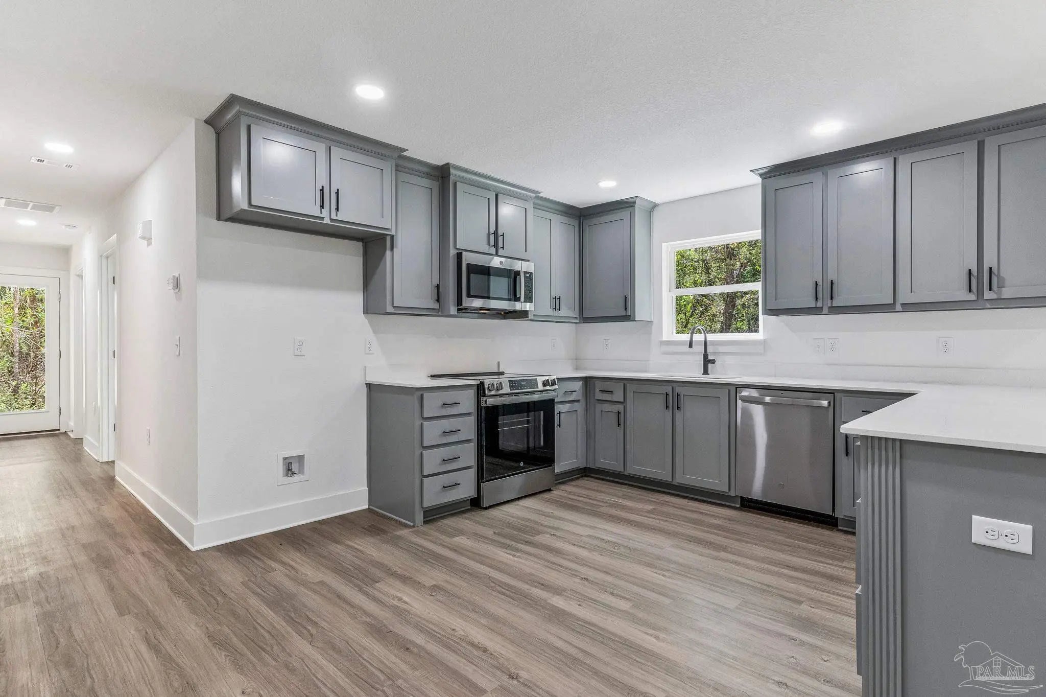 Welcome to this charming new construction cottage in Pensacola. Built by a respected local builder, this home offers a comfortable layout with thoughtful details and clean finishes throughout. The open living area features a custom beam that adds character to the space and flows easily into the kitchen, which provides ample counter space and cabinetry for everyday living. The split floor plan offers privacy, with the primary bedroom located on one side of the home and additional bedrooms on the other—perfect for family, guests, or a home office. Conveniently located just minutes from NAS Pensacola, beautiful Gulf Coast beaches, and local shopping and dining, this home offers an ideal combination of comfort and location. Schedule your showing today and come see this Pensacola cottage for yourself.