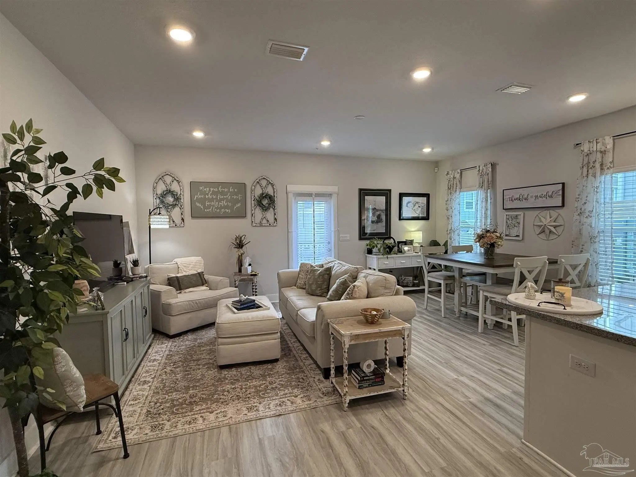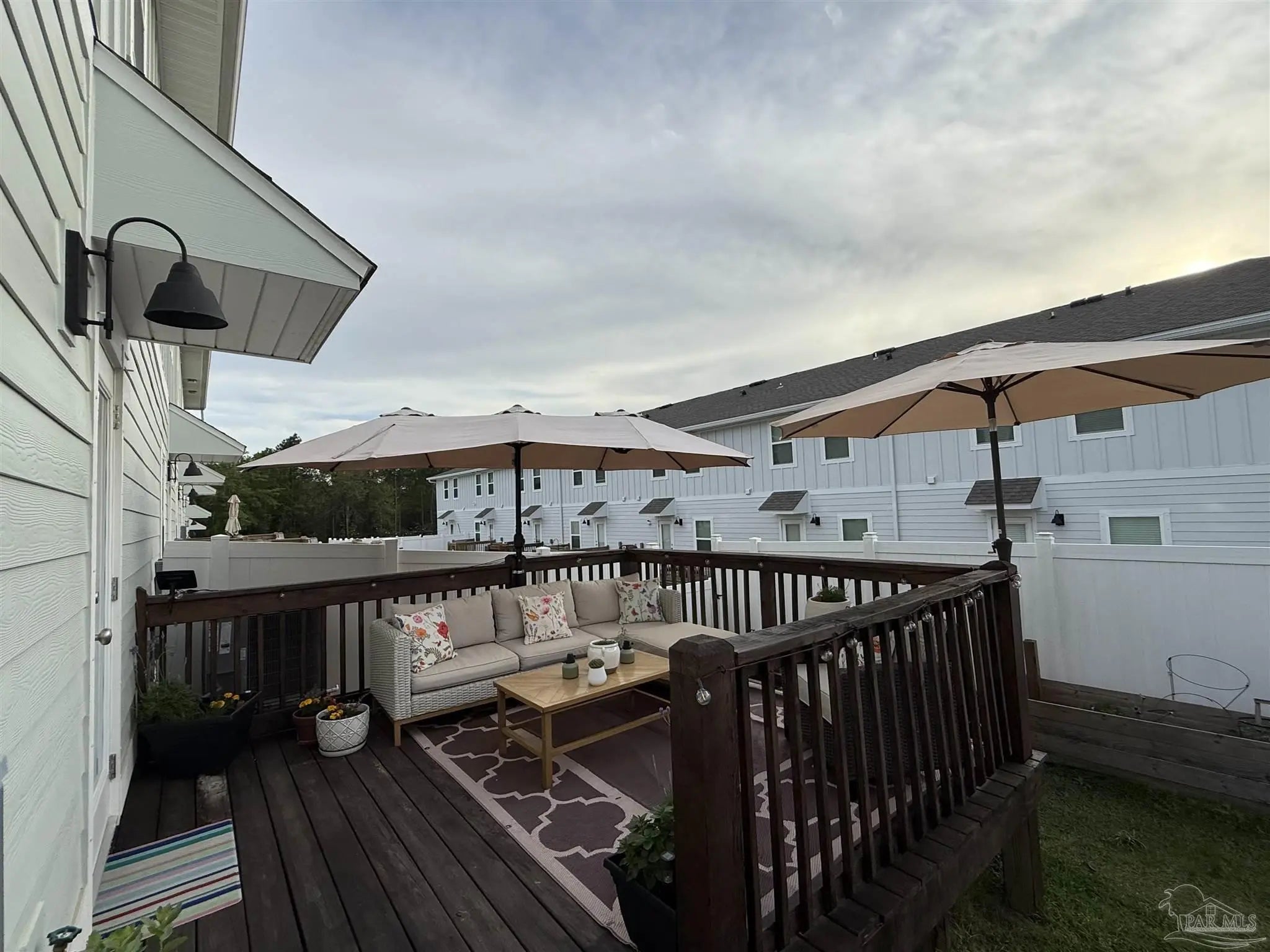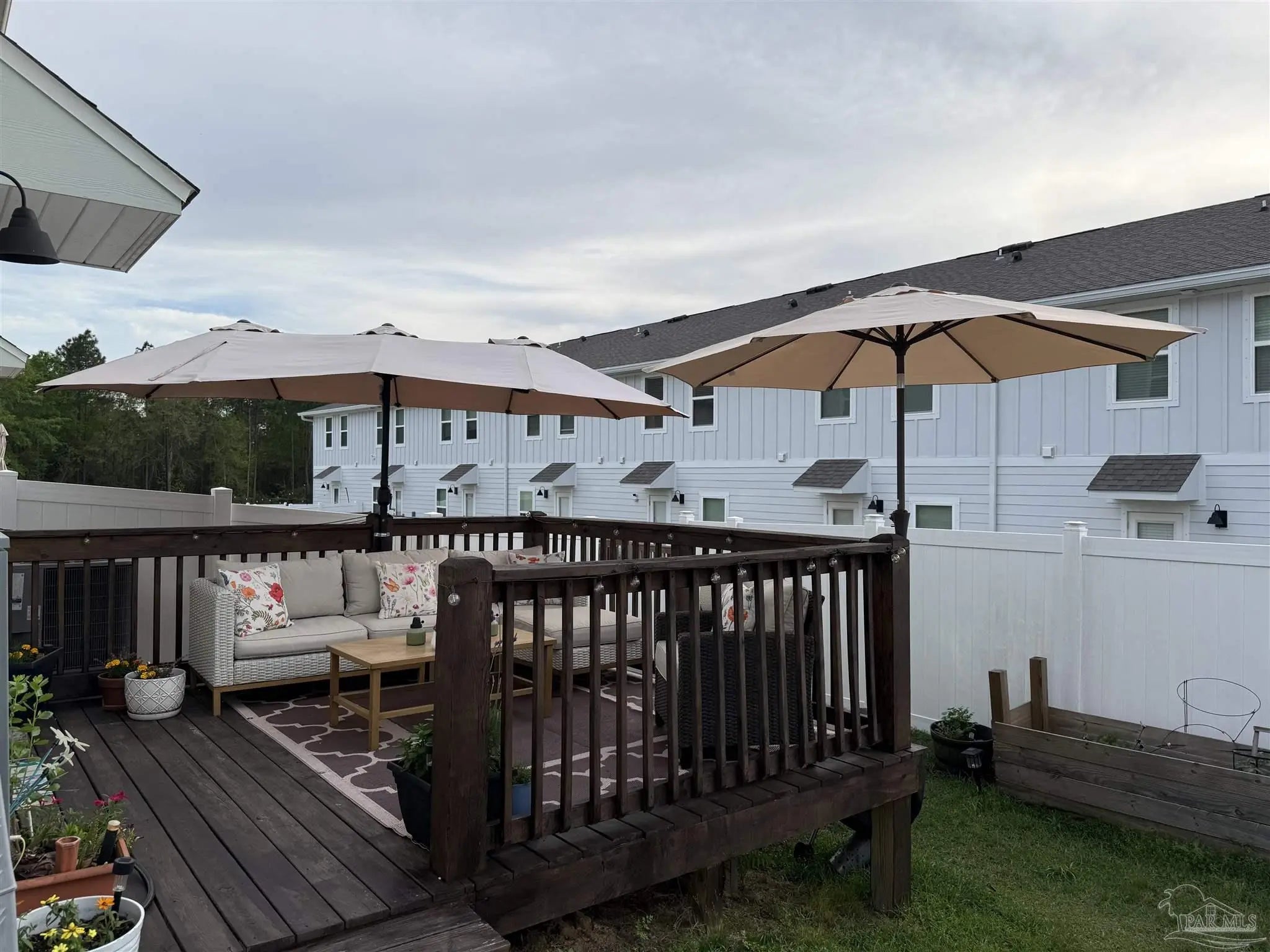 Gorgeous townhome in the Residences at Nature Creek community is only two years old. This END UNIT has a bigger fenced backyard, and large back deck. The Palm floorplan has 3 bedrooms, 2.5 baths and a fabulous open design that is perfect for entertaining. The open kitchen features Stainless Steel appliances, a smooth top range, built in microwave, quiet dishwasher, a large island bar, granite countertops and a pantry. The primary bedroom offers a spacious walk-in closet, and adjoining bath has a granite double vanity, 5' shower and linen closet. Interior features also include beautiful EVP flooring with frieze carpet in the bedrooms. Townhome has a one car garage, fabric hurricane window & door protection, Smart Home "Connect" system with video camera doorbell, and upgraded video security surveillance, keyless entry. Relaxing, easy living in one of the most desirable and convenient townhome communities. This gated community features a community pool, pavilion, and lawn care is also included. Located in West Pensacola areas close to Navy Federal Credit Union, shopping, dining, medical care, and quick access to the interstate exit 5.