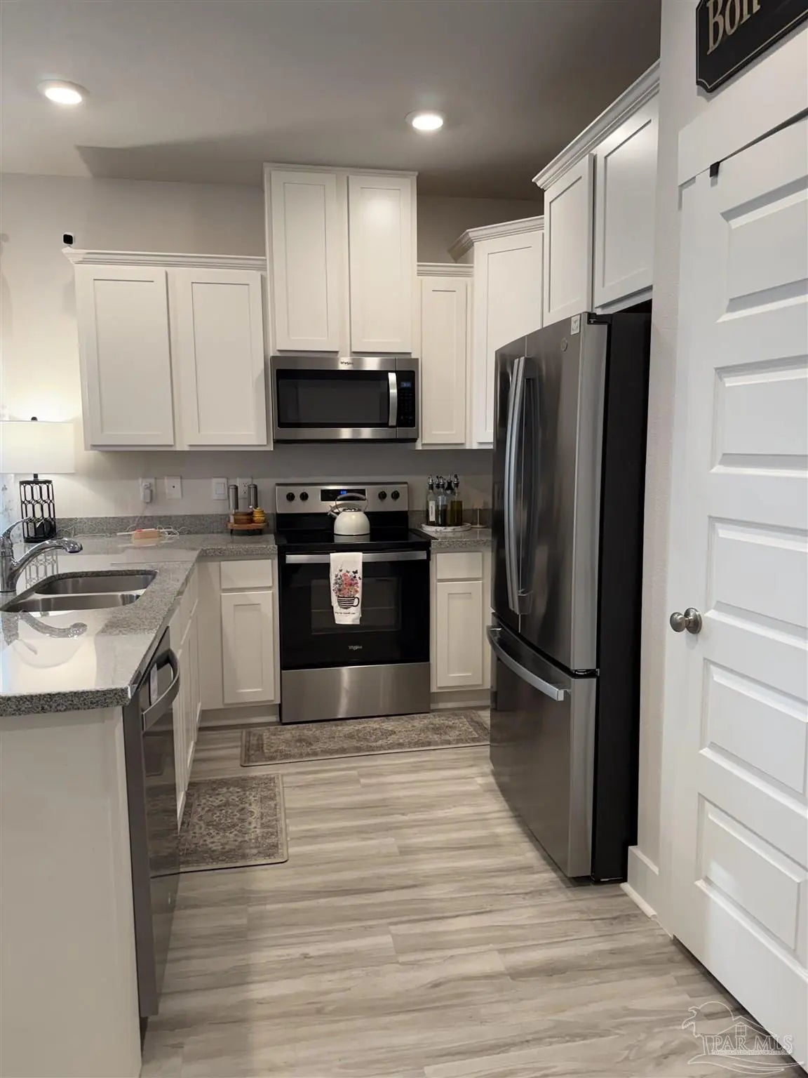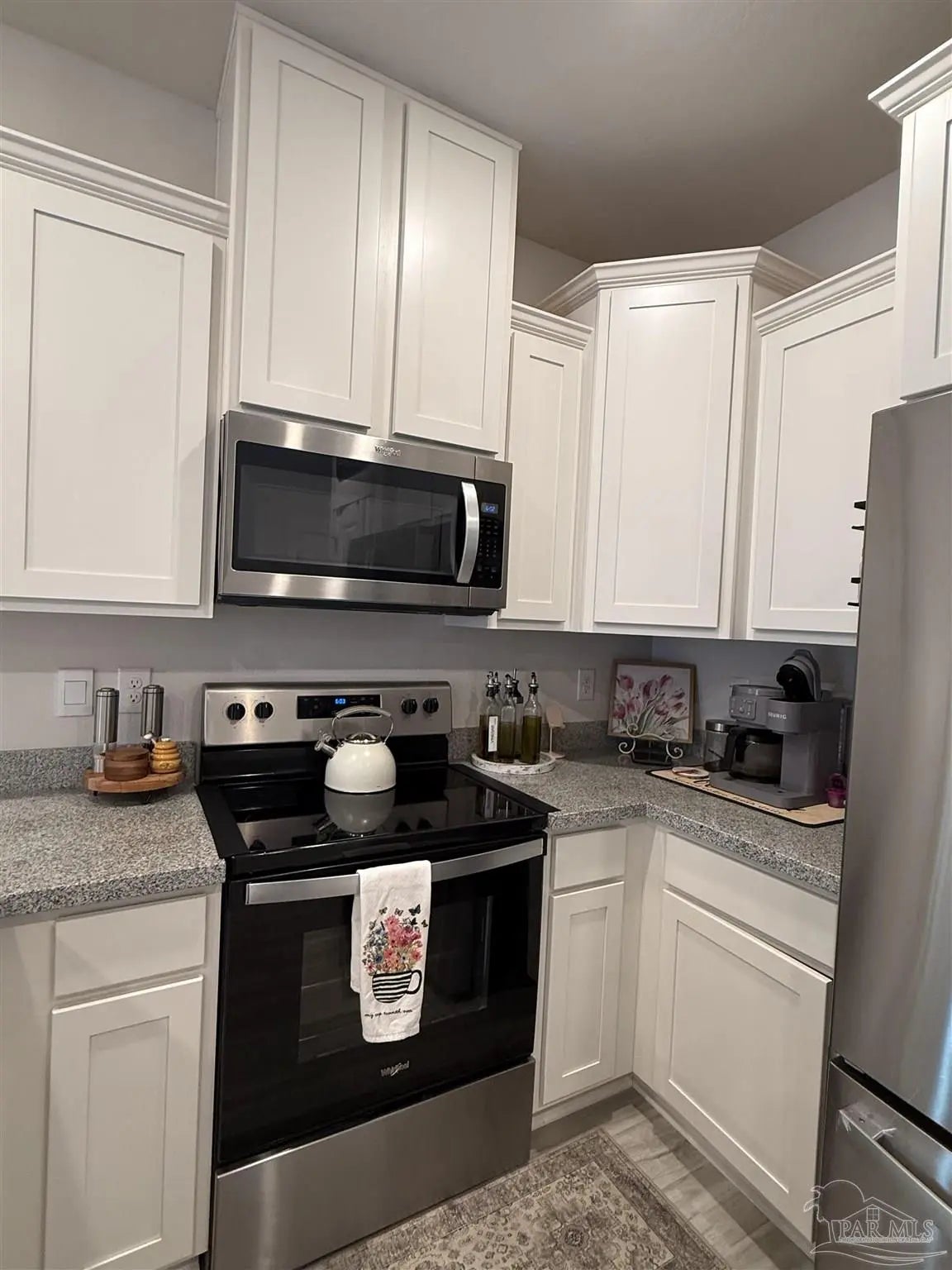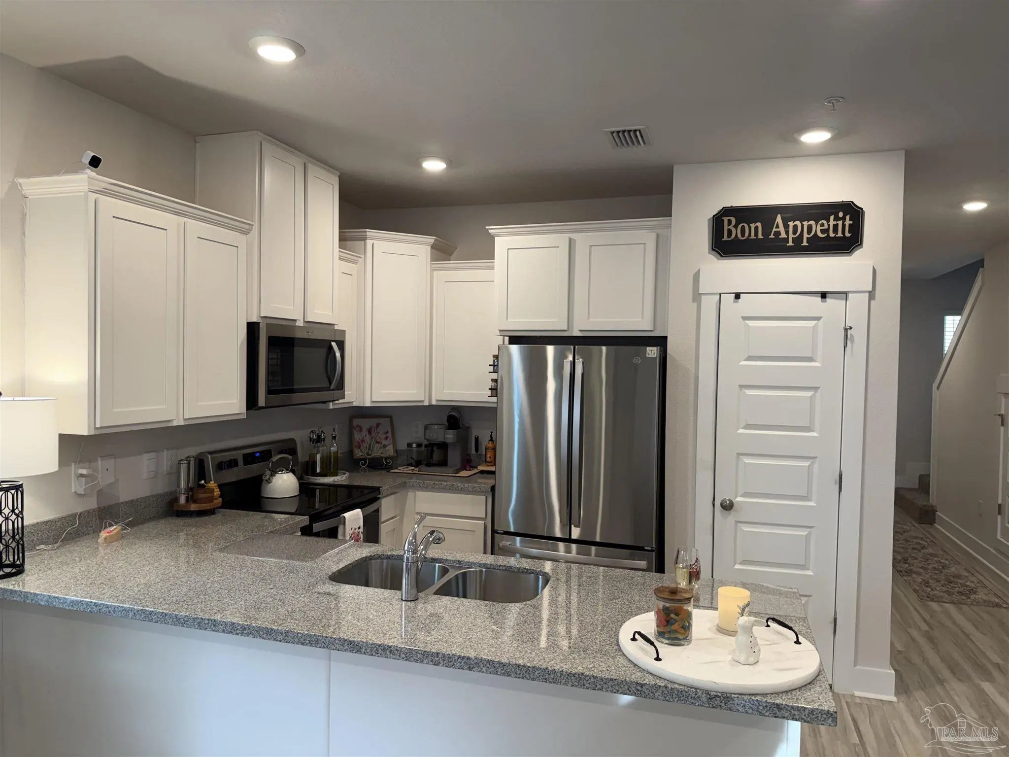 Gorgeous townhome in the Residences at Nature Creek community is only two years old. This END UNIT has a bigger fenced backyard, and large back deck. The Palm floorplan has 3 bedrooms, 2.5 baths and a fabulous open design that is perfect for entertaining. The open kitchen features Stainless Steel appliances, a smooth top range, built in microwave, quiet dishwasher, a large island bar, granite countertops and a pantry. The primary bedroom offers a spacious walk-in closet, and adjoining bath has a granite double vanity, 5' shower and linen closet. Interior features also include beautiful EVP flooring with frieze carpet in the bedrooms. Townhome has a one car garage, fabric hurricane window & door protection, Smart Home "Connect" system with video camera doorbell, and upgraded video security surveillance, keyless entry. Relaxing, easy living in one of the most desirable and convenient townhome communities. This gated community features a community pool, pavilion, and lawn care is also included. Located in West Pensacola areas close to Navy Federal Credit Union, shopping, dining, medical care, and quick access to the interstate exit 5.
