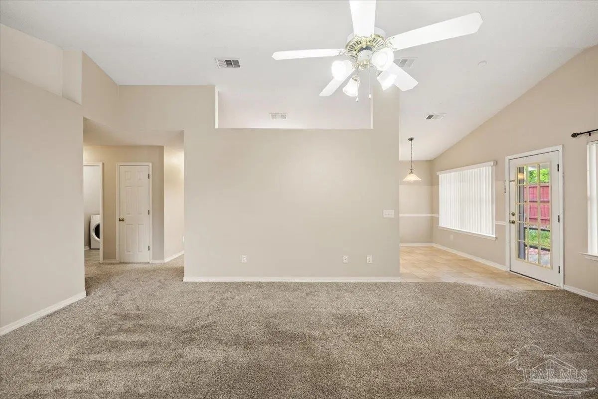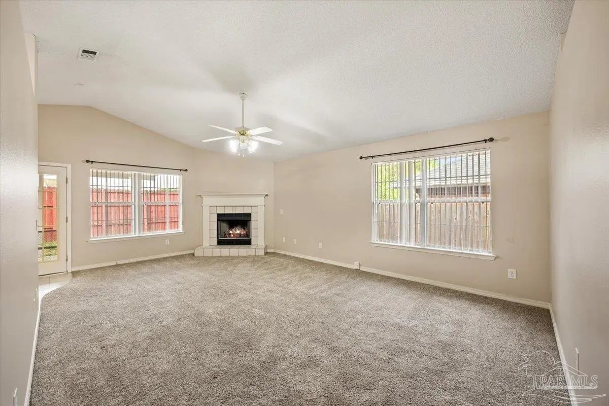Affordable, move-in ready, and tucked away on a quiet cul-de-sac with no HOA, this updated 3-bedroom, 2-bath brick patio home offers the perfect combination of value, comfort, and convenience just minutes from shopping, dining, and the UWF area. Step inside to an open-concept layout with a spacious great room featuring cathedral ceilings, plant ledges, and a raised-hearth corner fireplace that creates a warm and inviting space for everyday living or entertaining. The eat-in kitchen is designed for efficiency with a flat-top electric range, dishwasher, disposal, and refrigerator, plus a separate laundry room with washer and dryer already in place. The primary suite provides a comfortable retreat with laminate wood flooring and an ensuite bath that includes a garden tub, separate shower, dual vanities, and a large walk-in closet. Two additional bedrooms offer flexibility for guests, a home office, or additional living space. Out back, enjoy a fully fenced yard with a covered patio that is ideal for relaxing or hosting friends and family. Major updates include a roof replaced in 2022 and an updated HVAC system for added peace of mind, along with a two-car garage with opener. This is a rare opportunity to own a well-maintained home with no HOA restrictions in a convenient location at an affordable price point, making it a strong option for first-time buyers, downsizers, or investors. Schedule your showing today.