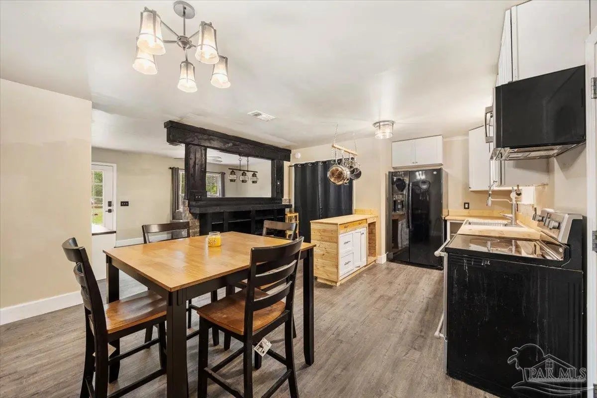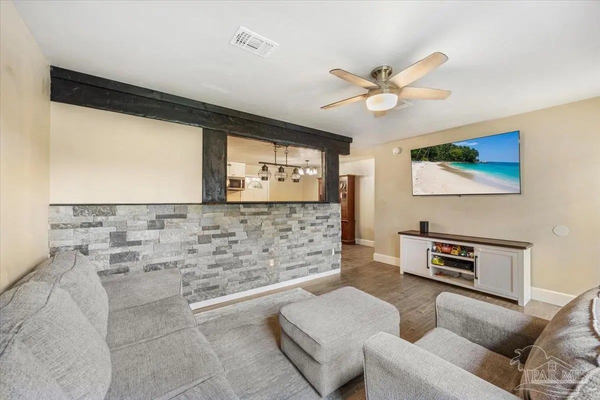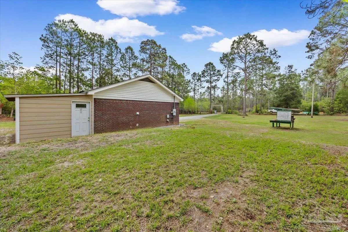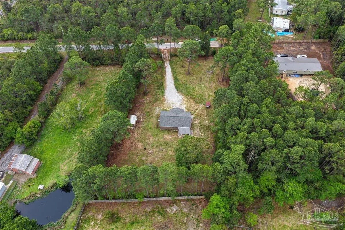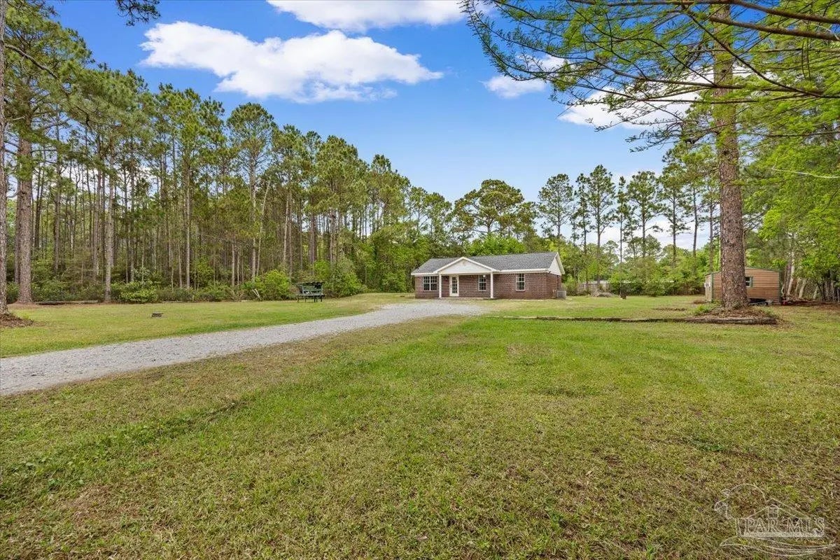 Escape to Your Quiet Country Acre – Minutes to the Beach & No HOA! If you are looking to escape the hustle and bustle, enjoy absolute peace and quiet, and still be within an easy drive of the shoreline, this quaint, well-maintained Milton home is your answer. Nestled on a sprawling one-acre cleared lot, just 10 miles from Gulf Breeze Parkway and south of I-10, this property offers a quintessential country lifestyle. Arrive via a charming gated dirt drive framed by mature long-leaf pines, which sets the tone for the secluded, park-like setting. This three-bedroom, two-bath ranch features a sturdy brick-and-vinyl facade, and a perfectly sized front porch waiting for your rocking chairs. Inside, the home has been thoughtful designed for functionality and comfort. The luxury vinyl flooring adds incredible warmth and character, flowing between the dining and living areas. A recently added, architecturally interesting pass-through between the living room and kitchen opens up the flow significantly, making the home feel expansive and perfect for entertaining. The rustic stone-veneer half-wall adds a unique cozy-cabin touch to the main living space. The kitchen was updated within the last few years and features stunning live-edge butcher block countertops, white shaker cabinets, and a striking high-contrast appliance package that includes a brand-new range and microwave. The floating pot rack and unique overhead fixture add stylish, functional flair. Outside, the potential for this cleared acre is unlimited. The property features a large detached shed that offers substantial storage or the perfect foundation for a future workshop. The rear of the home includes an screened enclosed porch, ideal for enjoying Florida evenings without the pests. Located in the highly desirable Garcon Point area, this is a rare opportunity to own an affordable acre with no HOA restrictions, all while being just 25 minutes from the sand and surf.