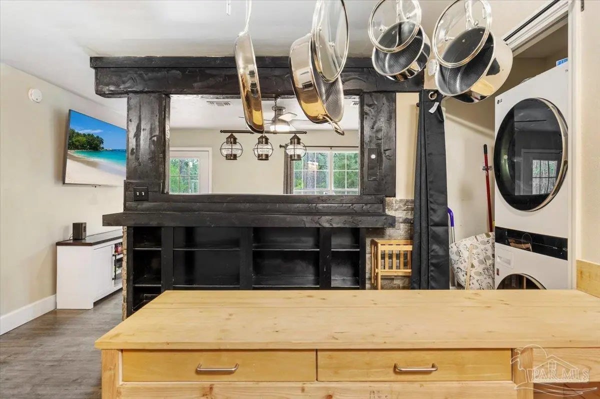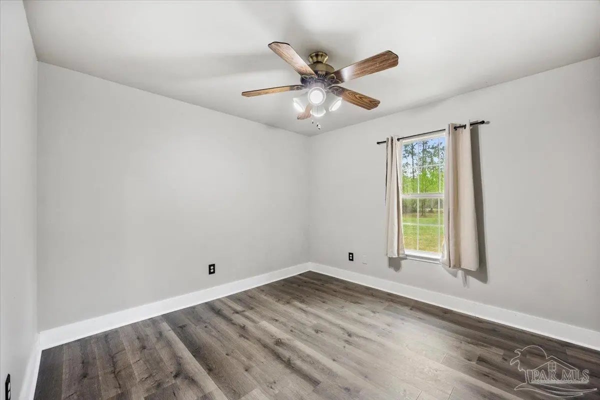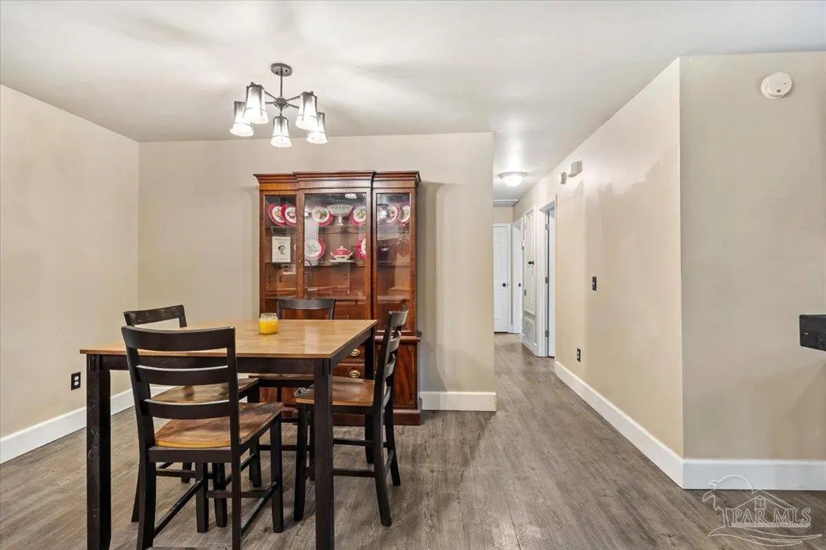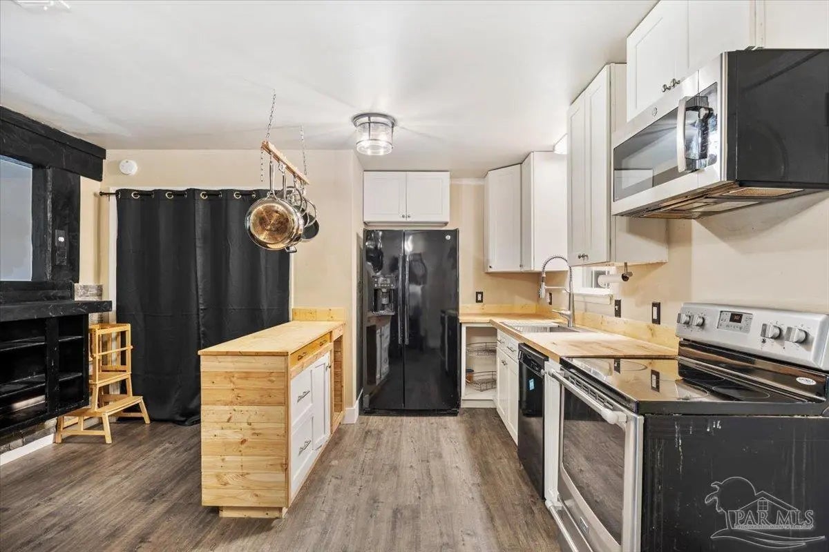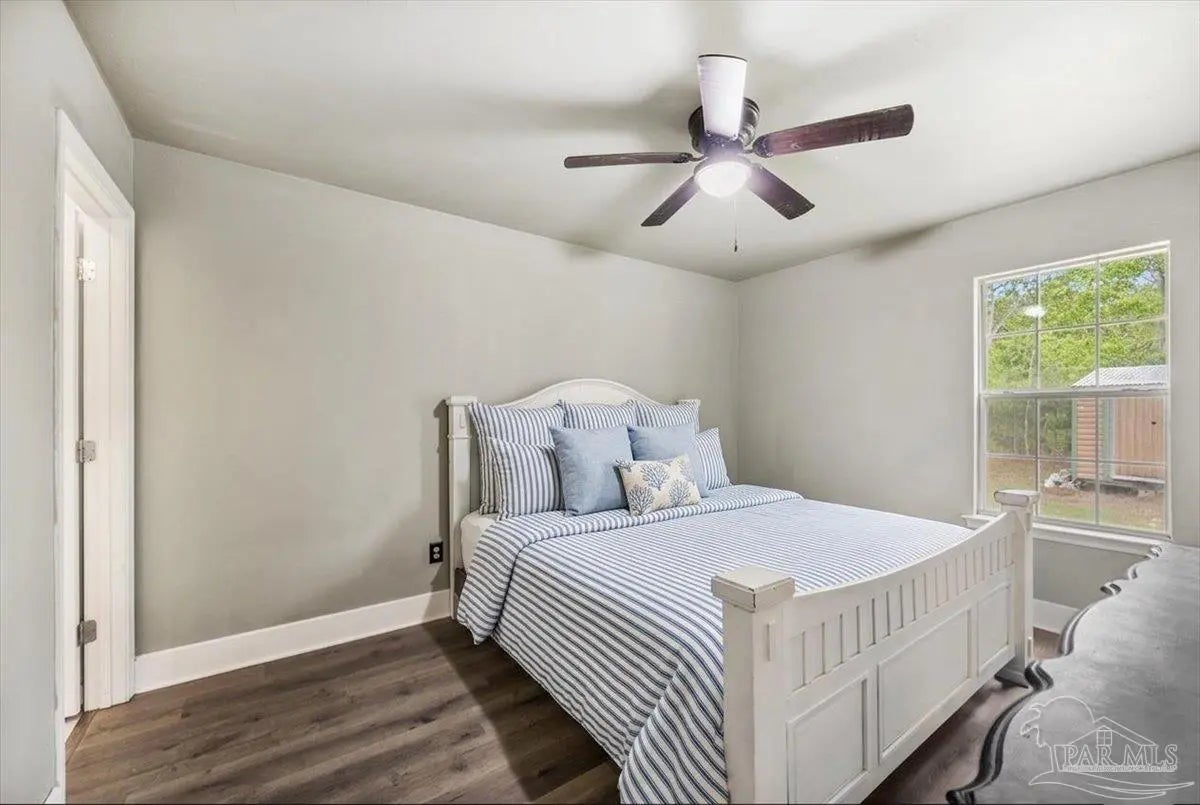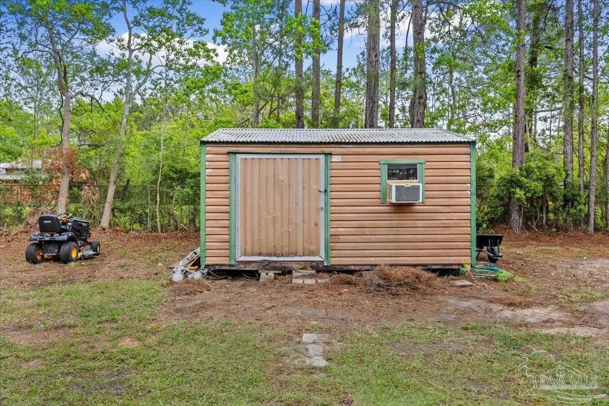 Escape to Your Quiet Country Acre – Minutes to the Beach & No HOA! If you are looking to escape the hustle and bustle, enjoy absolute peace and quiet, and still be within an easy drive of the shoreline, this quaint, well-maintained Milton home is your answer. Nestled on a sprawling one-acre cleared lot, just 10 miles from Gulf Breeze Parkway and south of I-10, this property offers a quintessential country lifestyle. Arrive via a charming gated dirt drive framed by mature long-leaf pines, which sets the tone for the secluded, park-like setting. This three-bedroom, two-bath ranch features a sturdy brick-and-vinyl facade, and a perfectly sized front porch waiting for your rocking chairs. Inside, the home has been thoughtful designed for functionality and comfort. The luxury vinyl flooring adds incredible warmth and character, flowing between the dining and living areas. A recently added, architecturally interesting pass-through between the living room and kitchen opens up the flow significantly, making the home feel expansive and perfect for entertaining. The rustic stone-veneer half-wall adds a unique cozy-cabin touch to the main living space. The kitchen was updated within the last few years and features stunning live-edge butcher block countertops, white shaker cabinets, and a striking high-contrast appliance package that includes a brand-new range and microwave. The floating pot rack and unique overhead fixture add stylish, functional flair. Outside, the potential for this cleared acre is unlimited. The property features a large detached shed that offers substantial storage or the perfect foundation for a future workshop. The rear of the home includes an screened enclosed porch, ideal for enjoying Florida evenings without the pests. Located in the highly desirable Garcon Point area, this is a rare opportunity to own an affordable acre with no HOA restrictions, all while being just 25 minutes from the sand and surf.