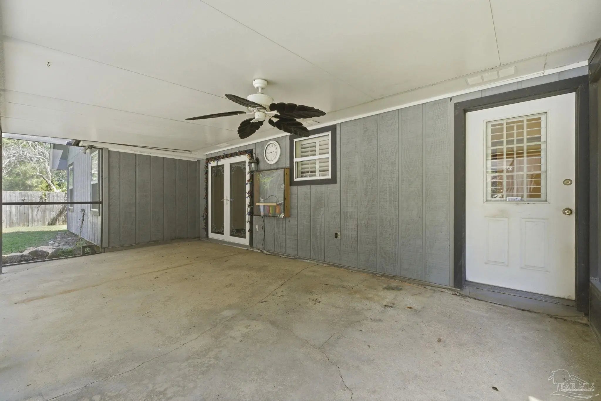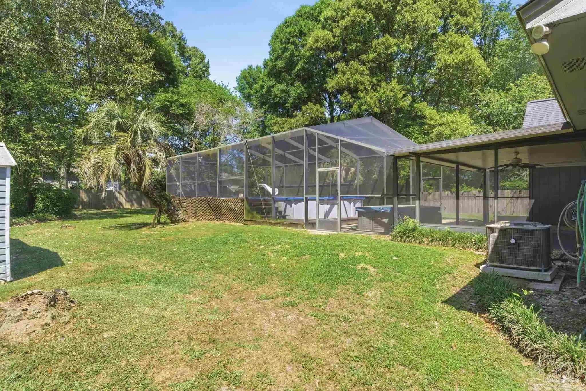 Rare double-lot opportunity! This charming 3-bedroom, 2-bath home offers expansive living on an oversized property, with the adjacent lot included in the sale (total of .77 acres). Step inside to a dramatic vaulted-ceiling living area anchored by a wood-burning fireplace. The kitchen impresses with an island, double oven (2023), and a sunny eat-in area with French doors that open directly to a covered lanai, ideal for seamless indoor-outdoor living. All rooms are equipped with ceiling fans and plantation shutters. The primary suite is a true retreat featuring soaring vaulted ceilings, a private ensuite with double vanities, and an expansive walk-in closet. Outside, the extra-large backyard offers plenty of room to enjoy, complete with a storage shed and a greenhouse. Additional highlights include a whole-home propane generator, fully fenced, an in-ground irrigation system, and a pool (liner needs replacement). Again - new roof (2021), new HVAC (2025), and impact windows (2010). Sold as-is and priced to reflect the amazing opportunity for someone to make their own. Schedule your showing today!