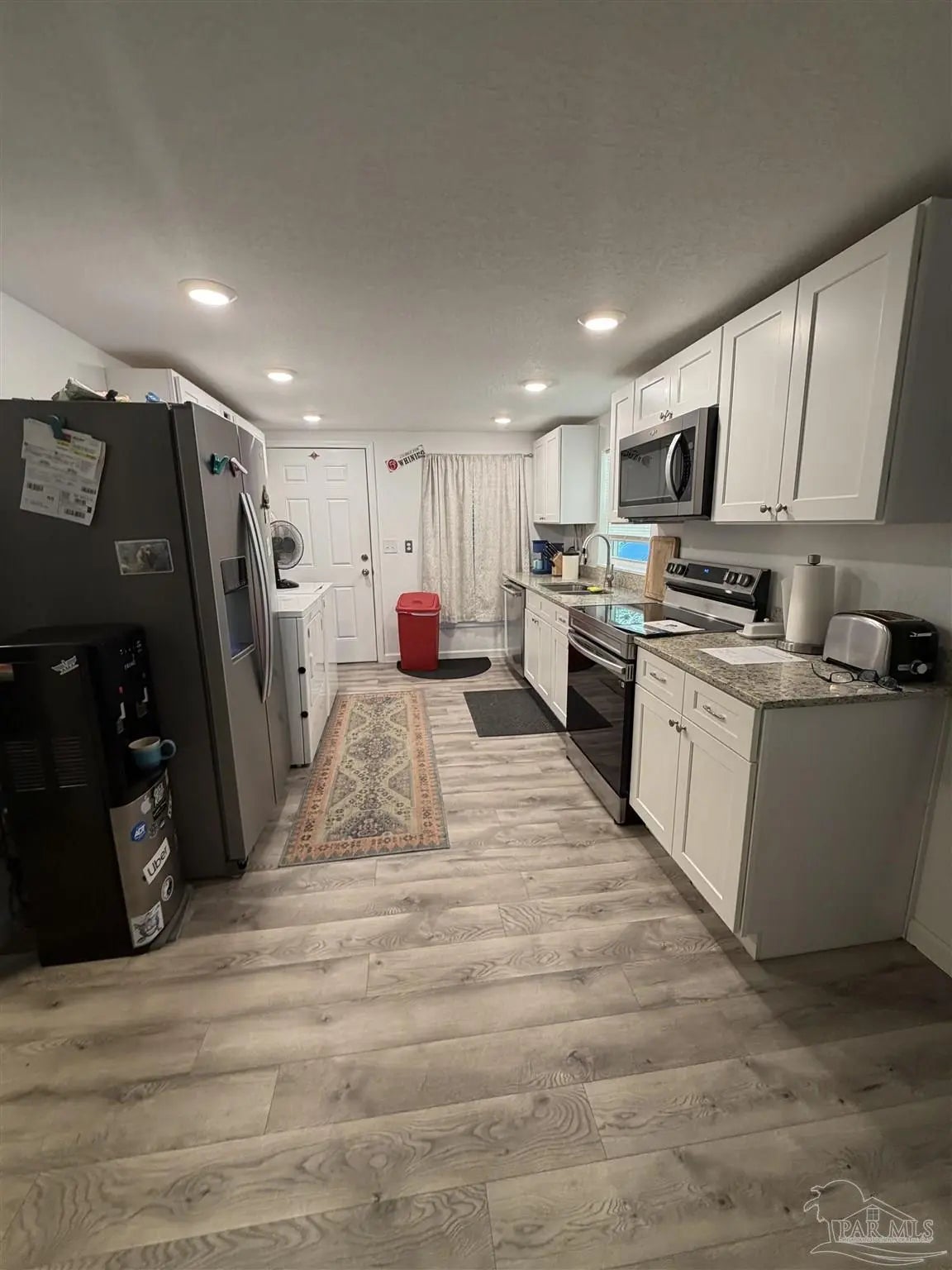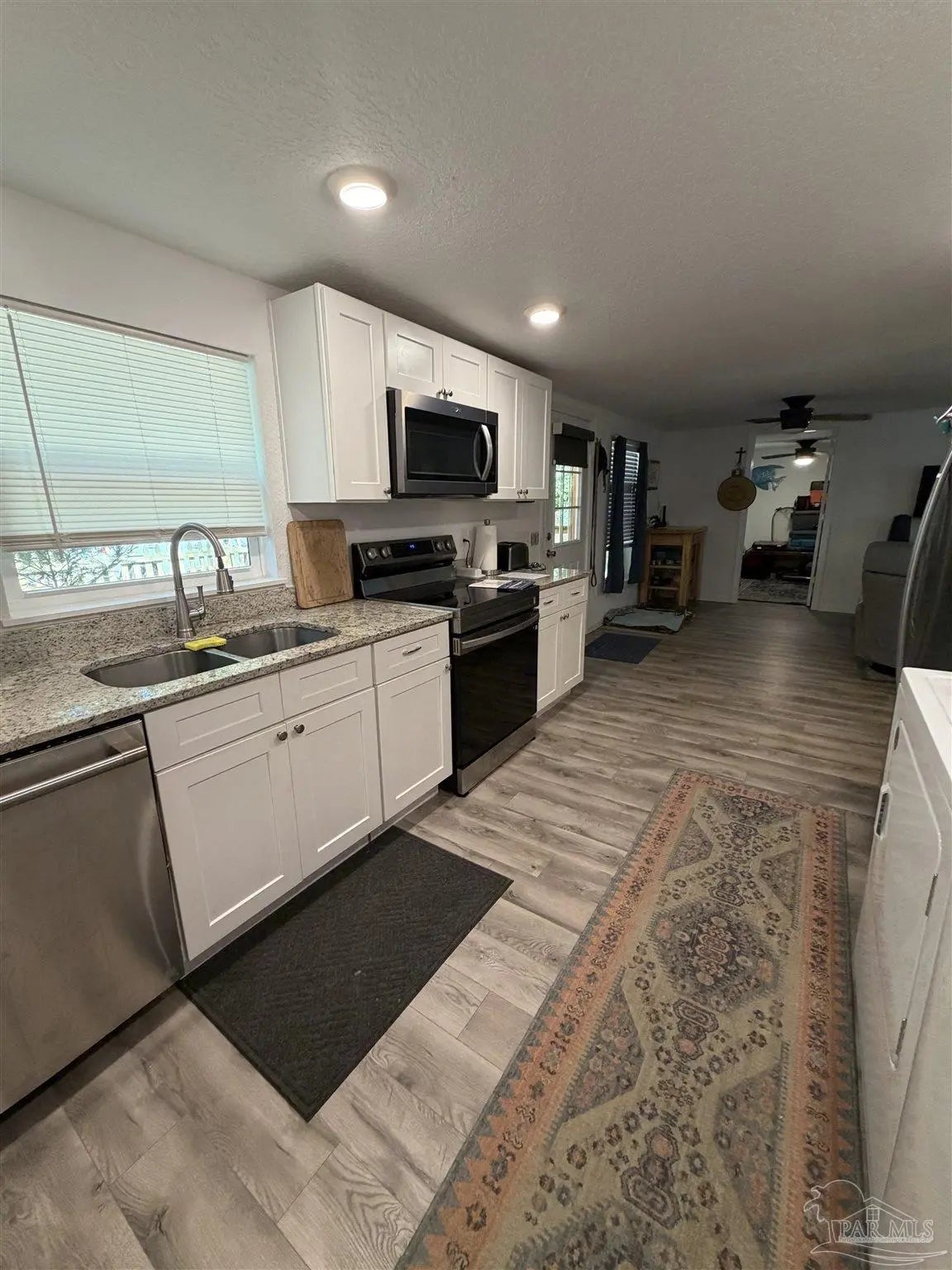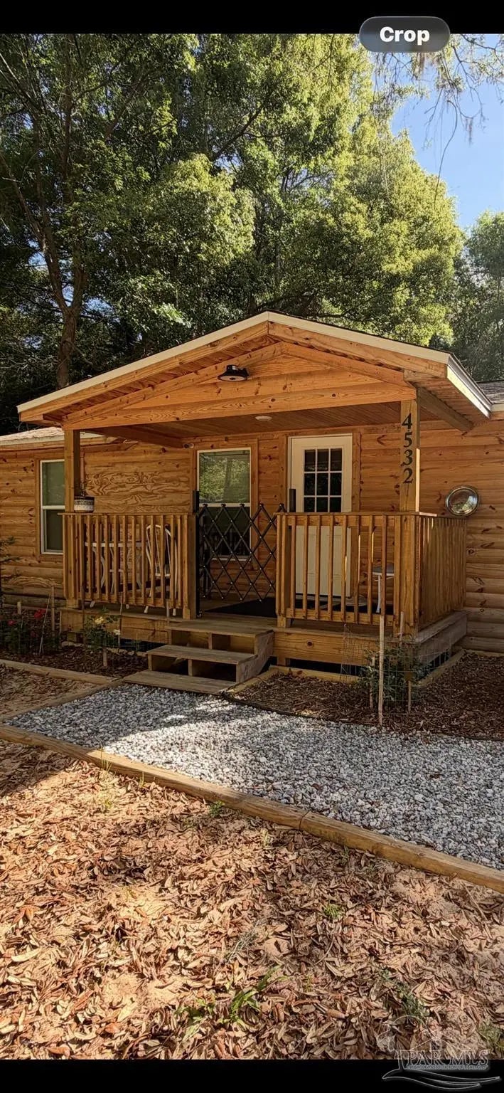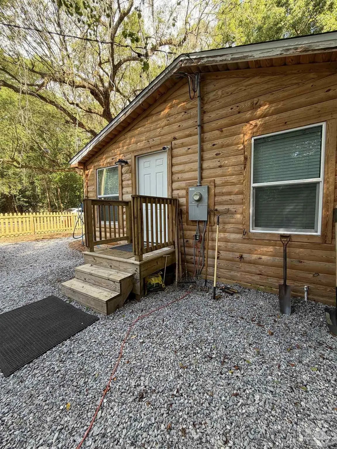 This charming log cabin-style cottage offers the perfect blend of cozy character and modern updates. Featuring three bedrooms and one bathroom, the home is thoughtfully designed to feel both spacious and highly functional.The updated kitchen shines with granite countertops, crisp white cabinetry, and a full suite of appliances, including a range, microwave, dishwasher, and refrigerator. Throughout the home, ceiling fans provide added comfort, while a new mini-split heating and cooling system (installed in 2025) ensures year-round efficiency. A brand-new roof, also completed in 2025, adds peace of mind.The flexible three-bedroom layout includes one room without a closet—ideal for use as a guest room, office, or bonus space.Enjoy relaxing mornings or evenings on the beautiful front porch, with a large, fully fenced yard—perfect for pets, play, or entertaining. Located in a well-maintained neighborhood in Bagdad/Milton, Florida, this home offers both tranquility and the convenience of living within a few miles of shopping and schools. Originally built in 1960, the property appraiser has the year 2000 as the effective age. Like new, come and see it!