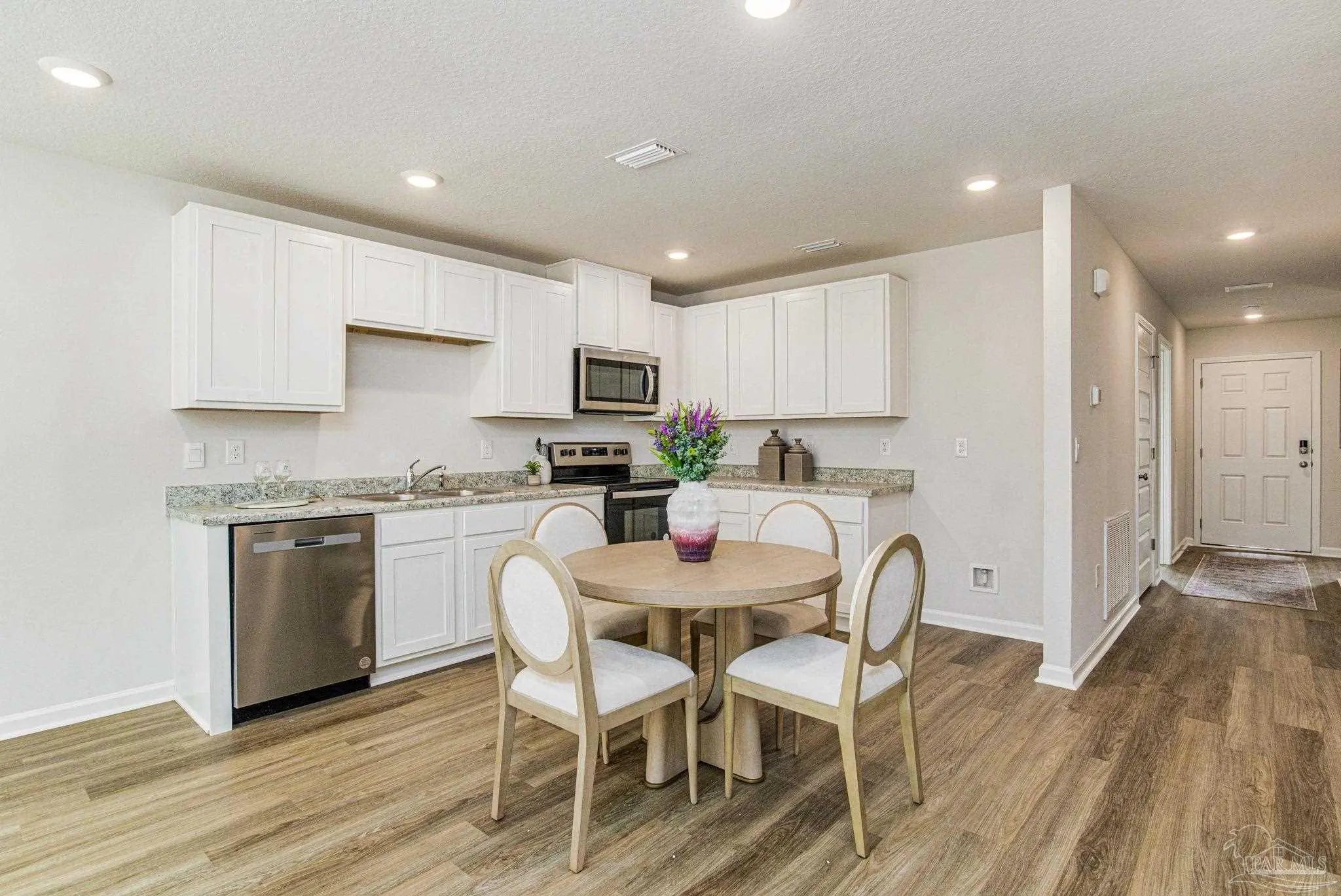 Welcome to Sanctuary! Just over 1,400 square feet, this home offers 4 bedrooms with 2 baths, and a 1-car garage. When entering the home, you’ll have easy access from the entry way to the first three bedrooms and guest bathroom. Continuing through the entryway you will find a large open concept living area. The kitchen features beautiful countertops and stainless-steel appliances, including a stove, dishwasher, and microwave hood combo. The patio is at the rear of the home with access to the family room. The primary bedroom is a spacious and relaxing space that includes the attached primary bathroom. Plus, enjoy the convenience of a Smart Home Technology package included as a standard feature. Future residents will have access to a community pool, making it the perfect place for leisure and enjoyment!