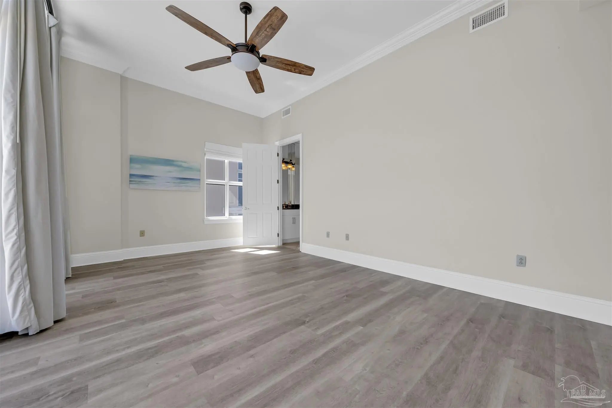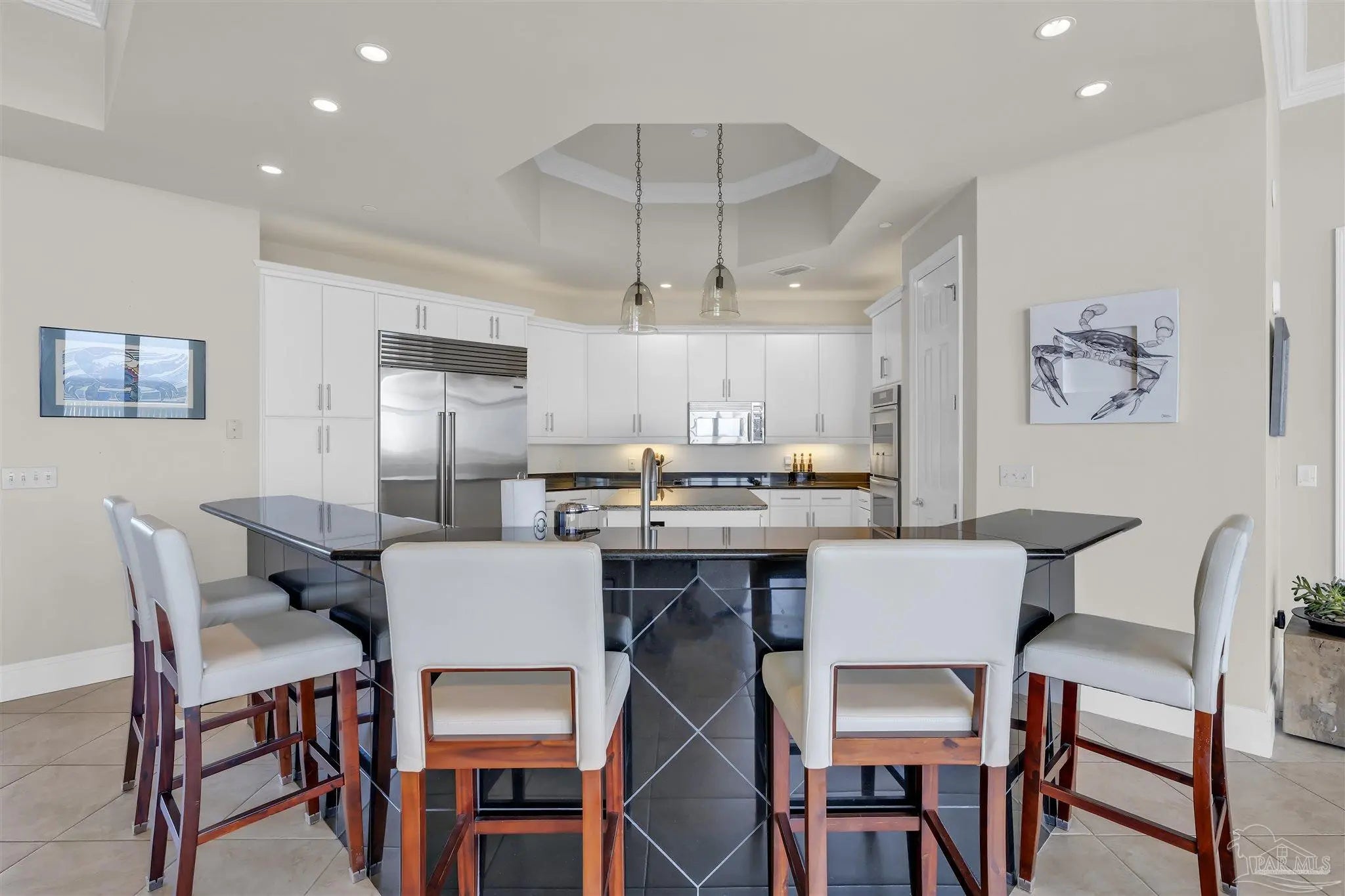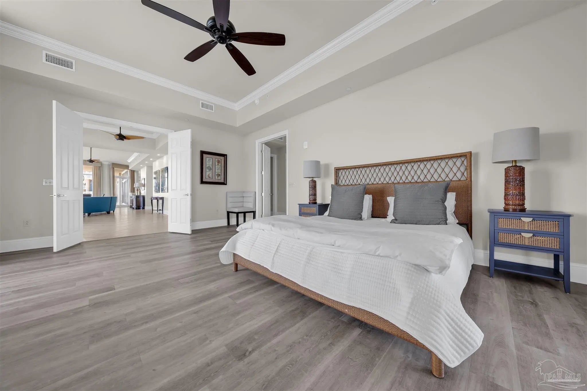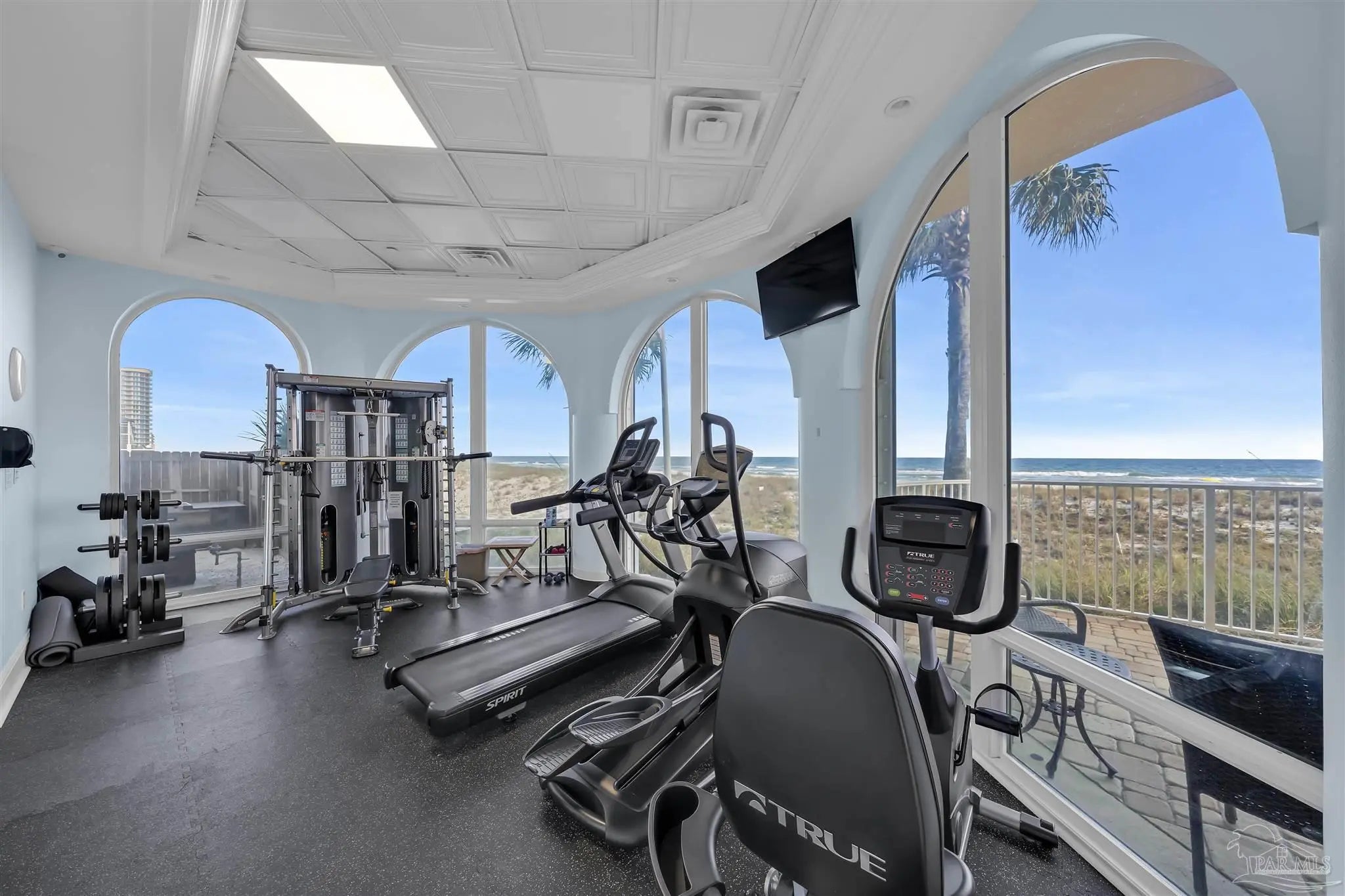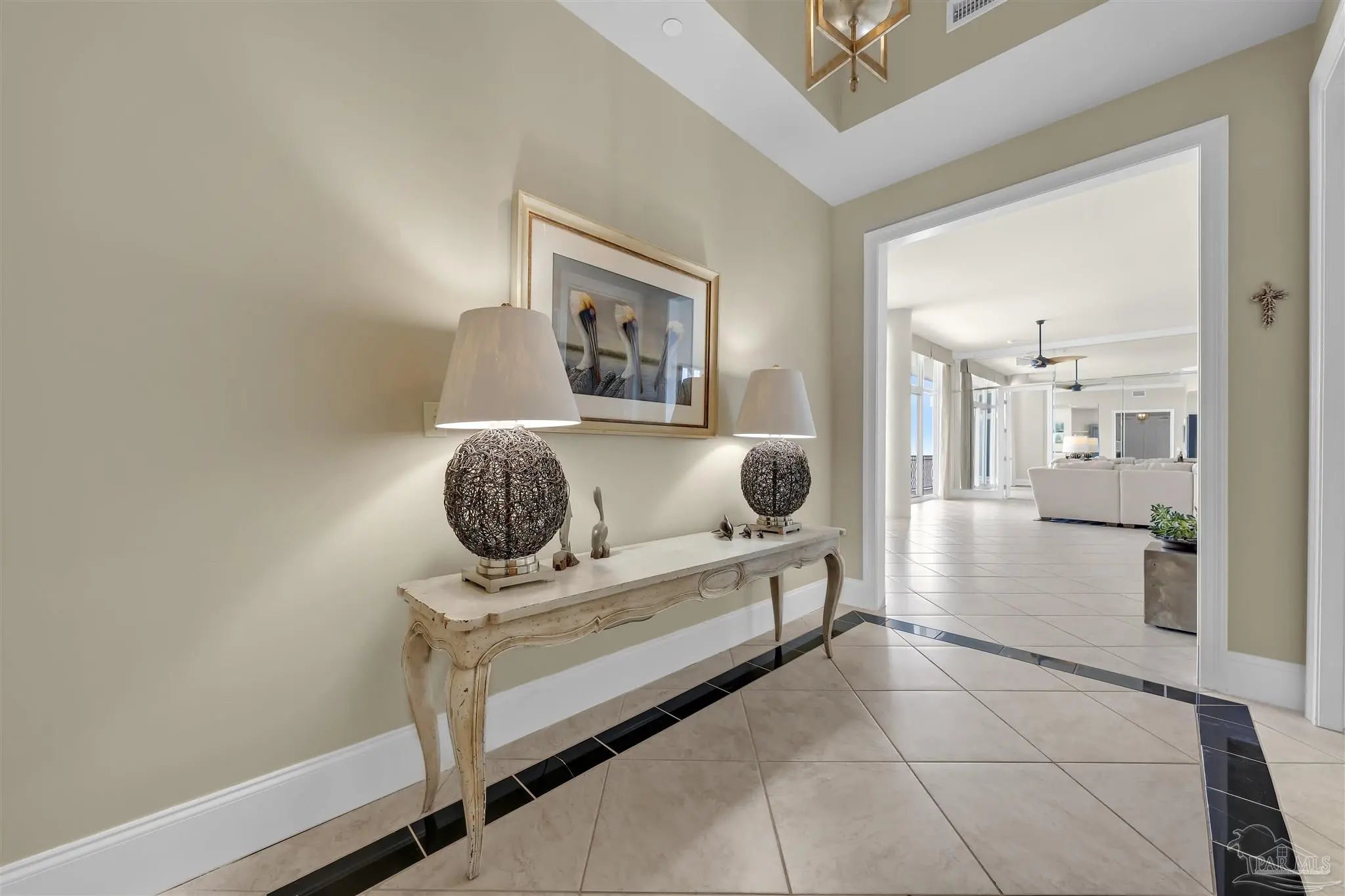 Experience unparalleled luxury in this extraordinary penthouse residence at La Riva East in Perdido Key, encompassing the entire 14th floor. Offering an impressive 4,868 sq. ft. of interior living space and an additional 2,982 sq. ft. of expansive balcony, this one-of-a-kind unit showcases breathtaking, panoramic view of the Gulf of Mexico and the pristine coastline. Designed for both elegance and privacy, the residence features five generously sized bedrooms, including a stunning Gulf-front primary suite and a secondary Gulf-front suite positioned on opposite ends. A private elevator opens directly into the residence, while abundant storage solutions are thoughtfully generated throughout. The gourmet kitchen is exquisitely designed with an expansive island, generous breakfast bar, premium finishes, and an elegant wet bar, ideal for sophisticated entertaining. Light-filled living and dining spaces are wrapped in floor-to-ceiling glass, enhanced by motorized window treatments for seamless comfort. The primary suite is a serene sanctuary, offering breathtaking sunrise views, dual walk-in closets, and a spa caliber bath with a jetted soaking tub and oversized walk-in shower. Four additional guest suite feature private ensuite baths with three capturing sweeping island vistas as private balcony access. A premium deeded parking space under the portico provides effortless access, while a private double garage with additional storage is available for purchase. With only 66 residences, La Riva offers a rare sense of privacy along 520 feet of pristine, sugar-white shoreline. Residents enjoy world-class amenities, including a Gulf-front heated indoor pool, outdoor pool and spa, a state-of -the-art fitness center with sauna and steam room, gathering room and an exclusive theater. A one-year minimum rental policy preserves the tranquil, residential ambiance.