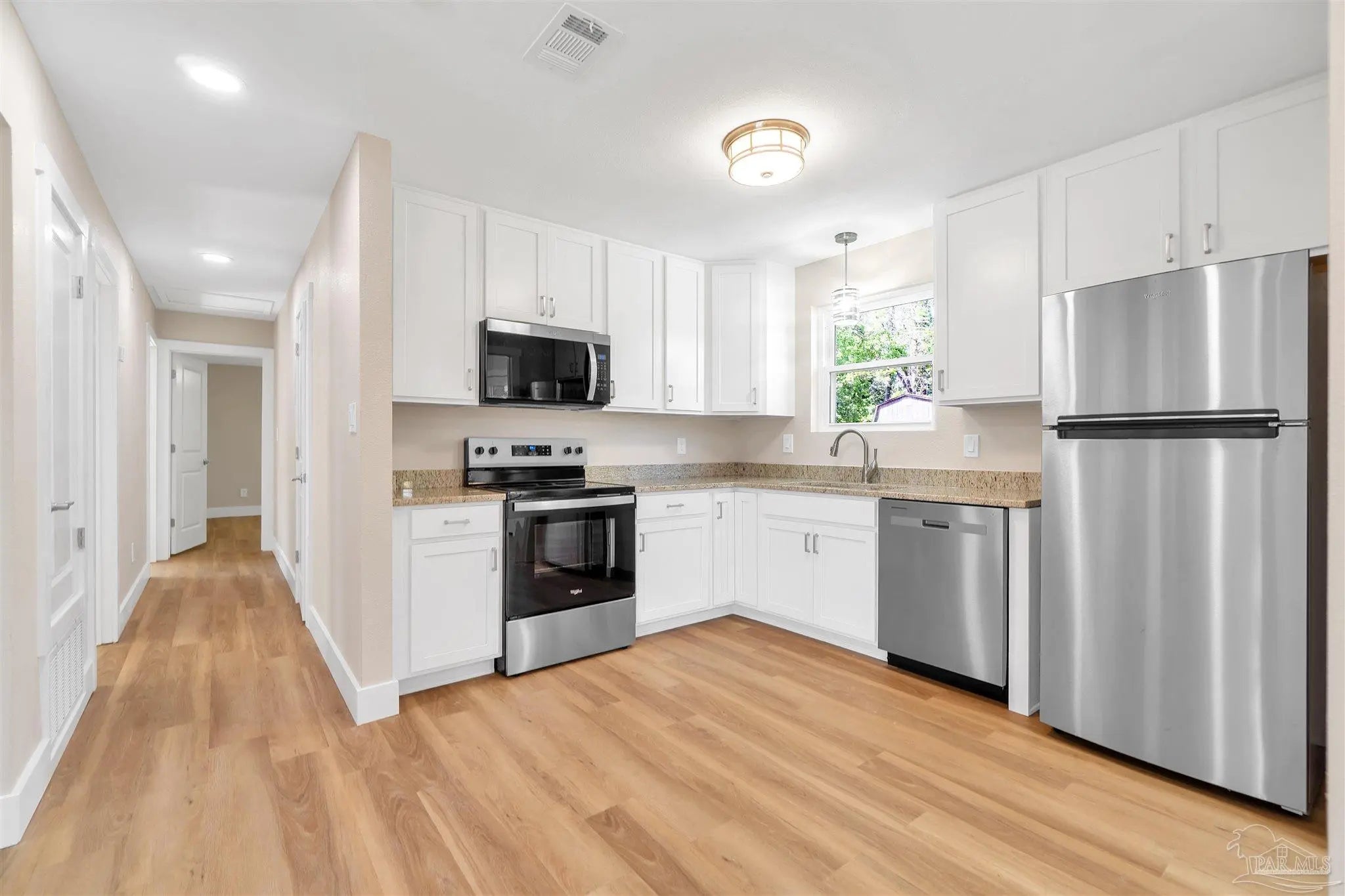 3 bed/2 bath BRICK home. In a market flooded with cheap flips that prioritize the seller’s bottom line over quality craftmanship, this home is a refreshing reality check. Stripped down to the studs and rebuilt with actual integrity, it skips the budget-grade shortcuts in favor of higher-end finishes and thoughtful design. You’ll find designer granite countertops, soft close cabinets, recessed lighting, and modern ceiling fans that elevate the home. In the bathroom, the tub or shower tile goes all the way to the ceiling—because half-measures weren't invited to this renovation. If you’re not a fan of carpet, no worries, there is none in the house, only quality LVP at this address. The remodel isn't just cosmetic; with a new roof, new windows, and impact-rated doors, the house is as solid as it is stylish. From the sleek new appliances to the impressive laundry room (seriously, wait until you see it in person), this is a rare, truly turn-key find for someone who knows the difference between a quick coat of paint and a proper remodel. It sits on a quiet cul-de-sac where you won't be bothered by through traffic. All this on an approximate ¼ property and oversized barn-style shed for your gear. One member of the selling party has an active real estate broker license.