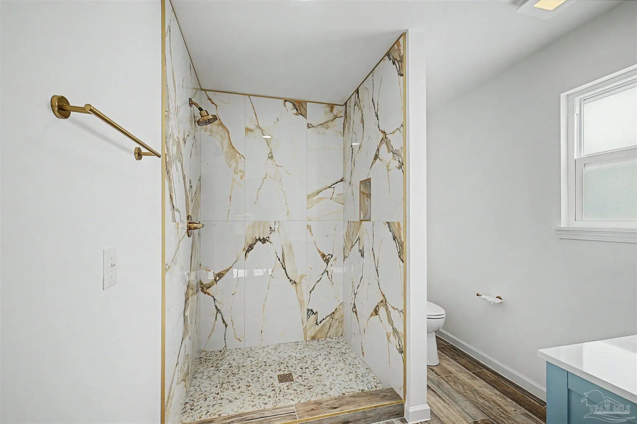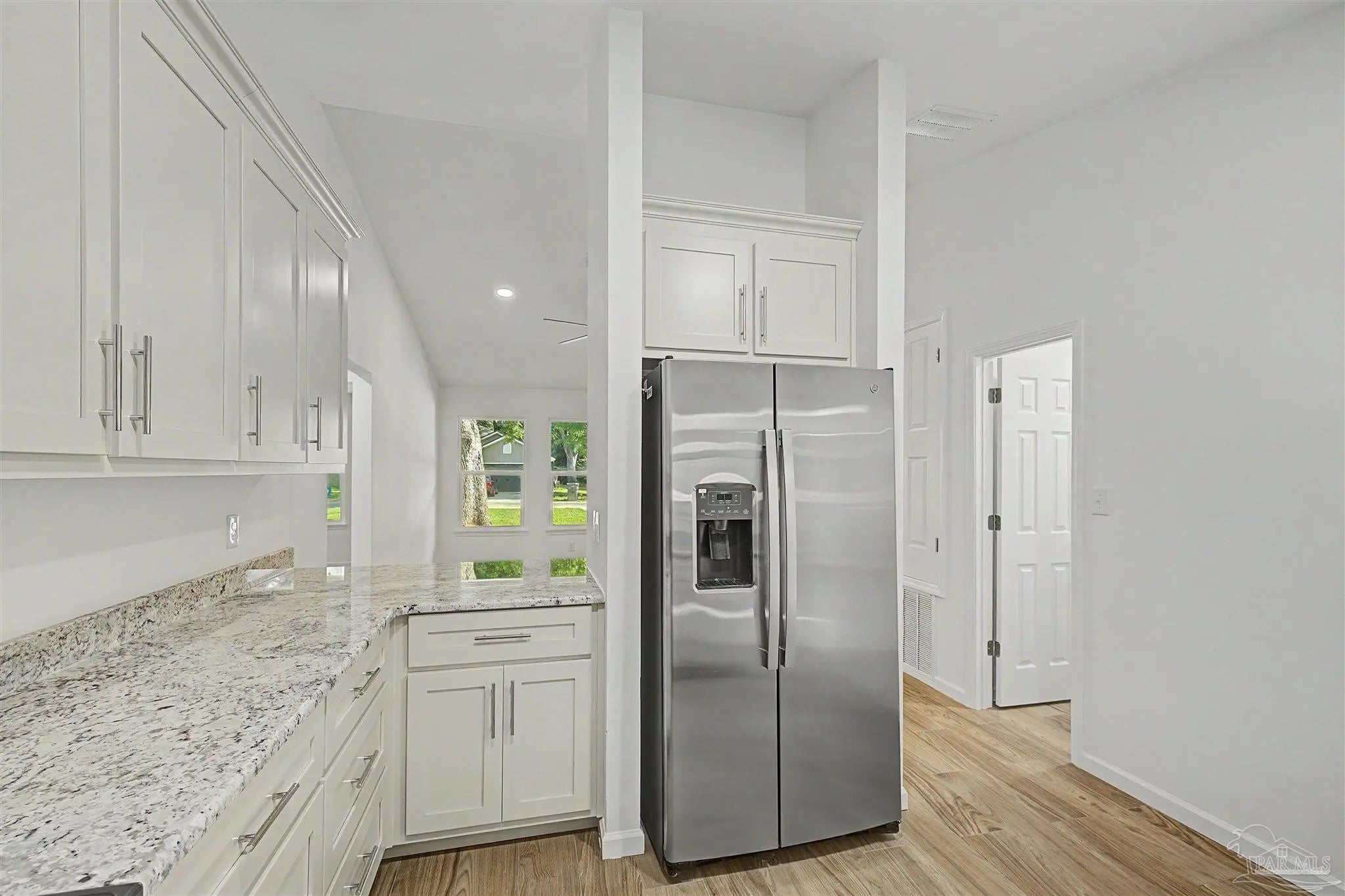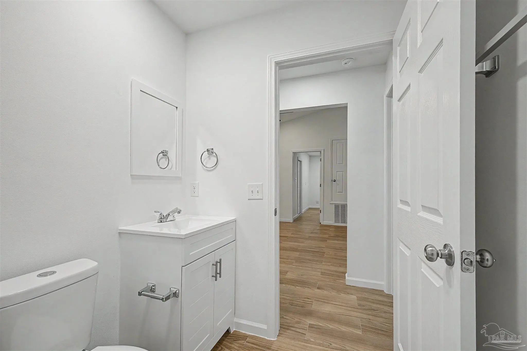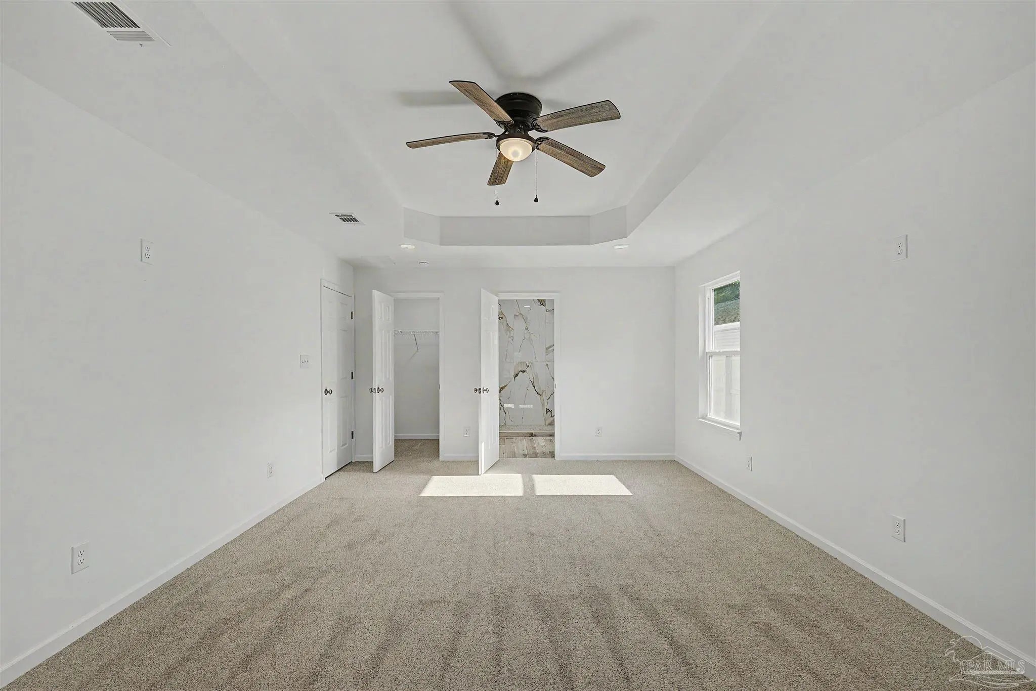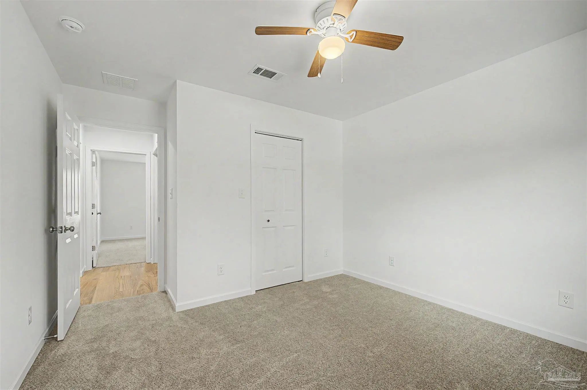 Brand New Home with Premium Finishes and Custom Features on Dead End Street with NO HOA! Minutes from Olive Rd and Davis Hwy, not only is the home Stunning, but convenient as well with less than 10 minutes to malls, shopping, restaurants, Hospitals and the Airport! Just under 1250 Sq Ft of living space with 3 Bedrooms and 2 Full Bathrooms. High Ceilings greet you in the living space, with LED lighting for energy efficiency and waterproof ceramic wood look flooring throughout the kitchen and bathrooms makes cleaning effortless. The kitchen is fitted with elegant Granite counters and a service window/breakfast bar. Painted cabinets with stainless appliances and a double door fridge. The master bedroom features a tray ceiling with ensuite bathroom and custom tile shower. The home is fitted with a privacy fence at the seller's expense and the one car garage has an additional back yard access. Hurricane Impact Windows! No shutters necessary. Spacious backyard with covered back porch for tons of outdoor possibilities!
