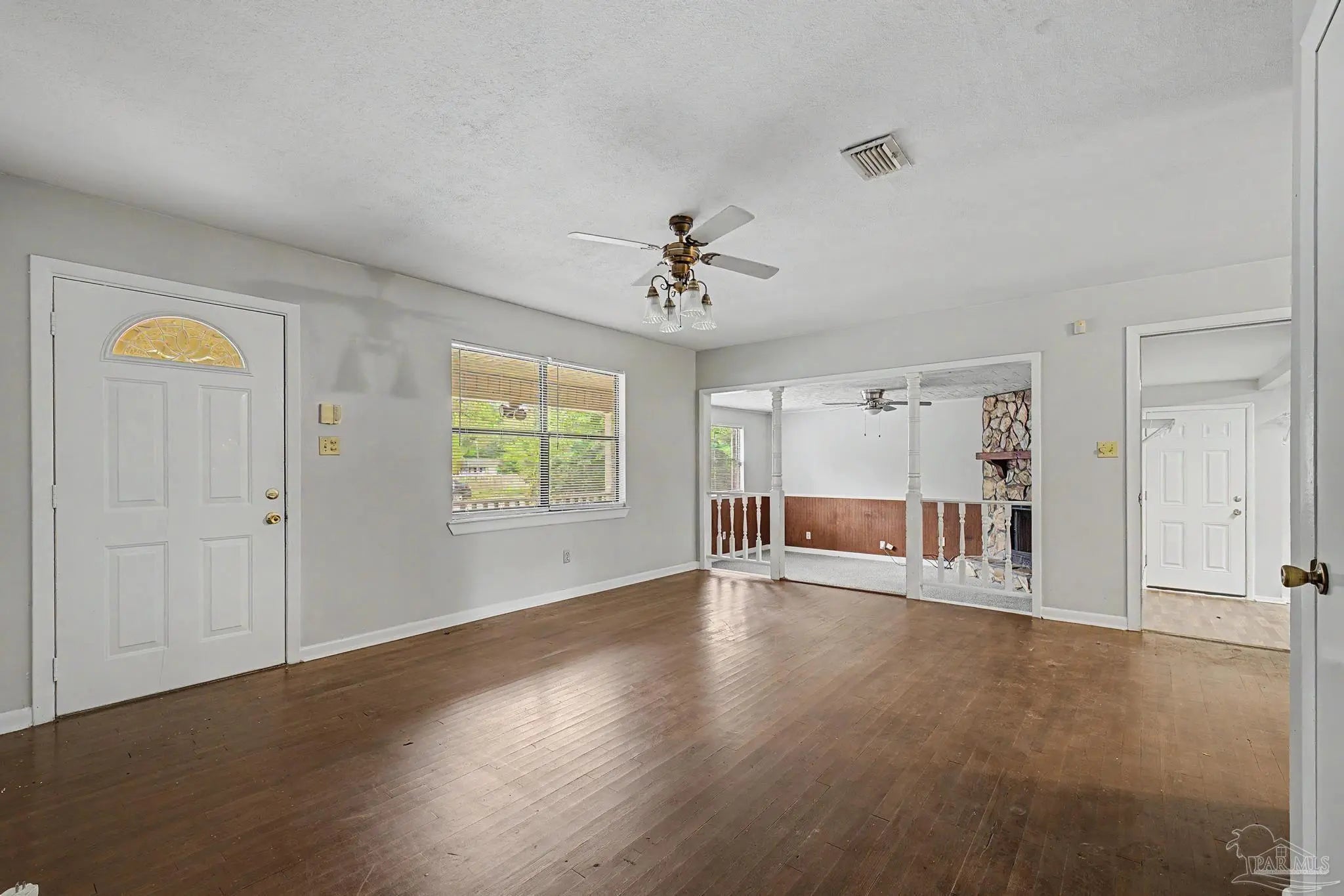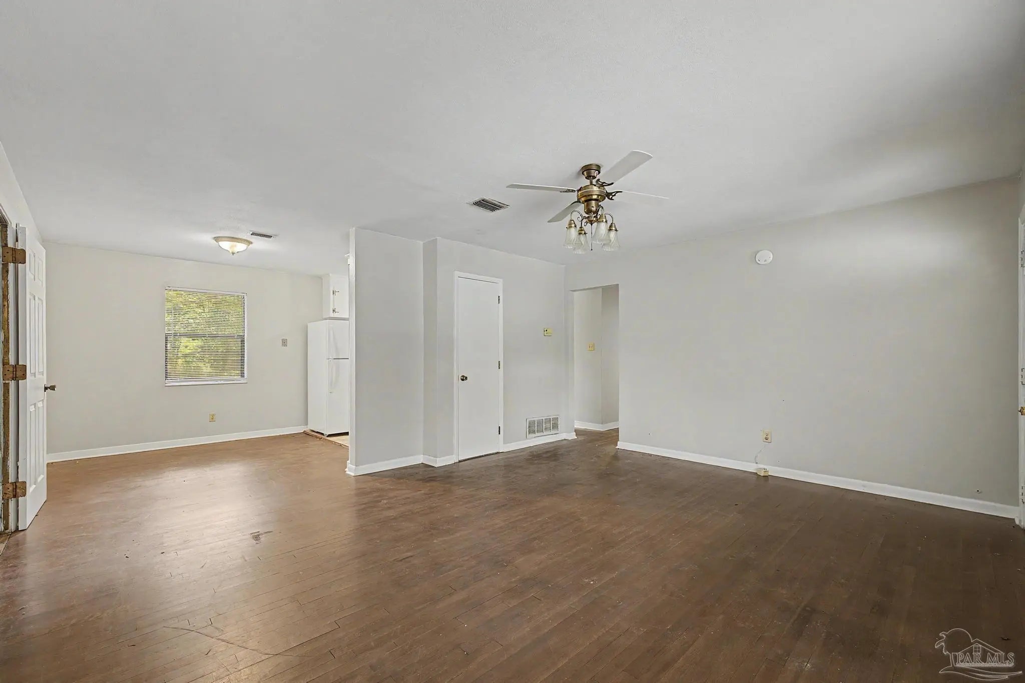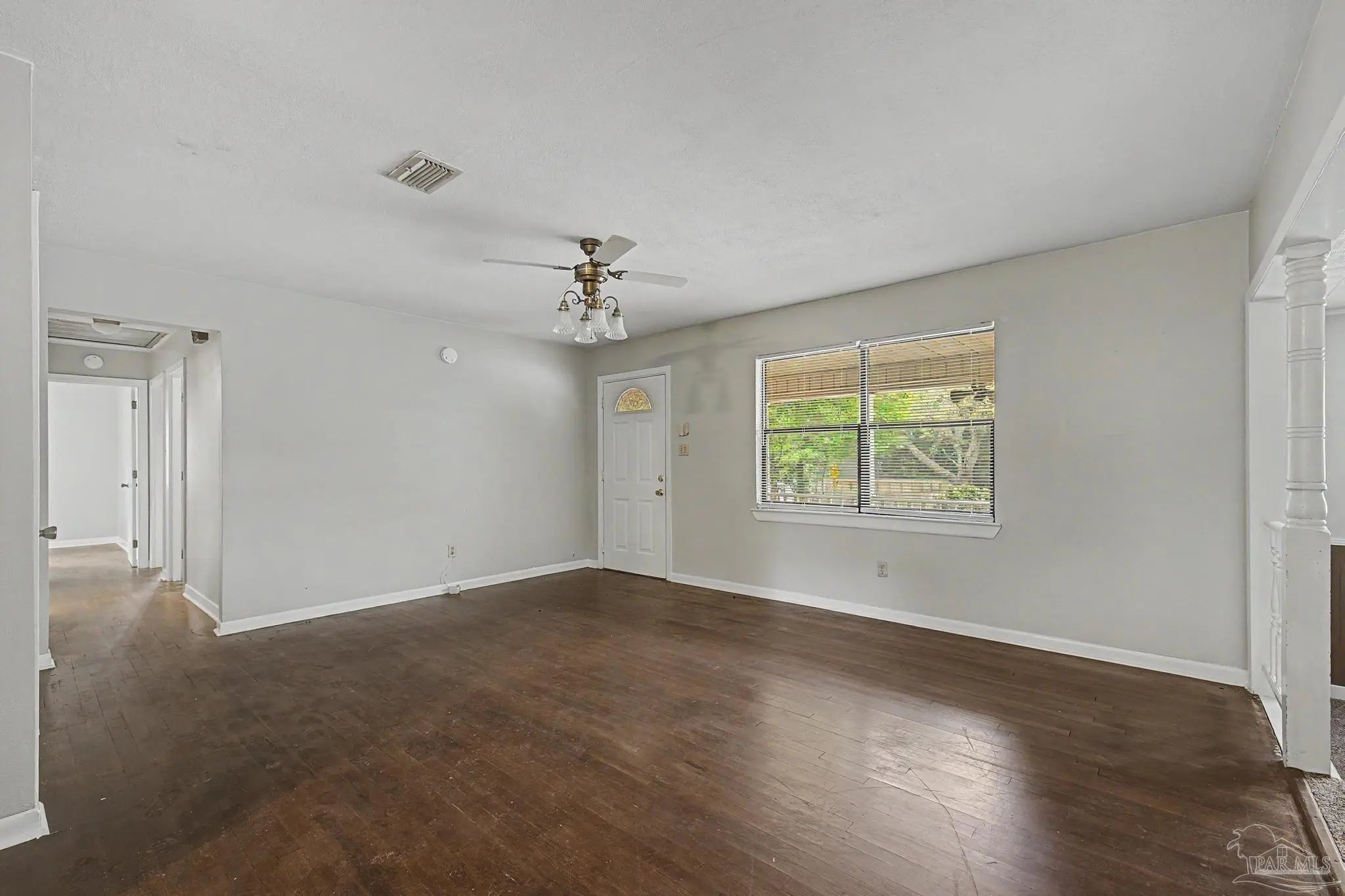 Conveniently located near shopping, restaurants, NAS Pensacola, and everyday amenities, this 3-bedroom, 2-bath home offers a functional layout with multiple living spaces. The main living room is complemented by a separate den, providing flexibility for a second sitting area, home office, or entertainment space. Hardwood flooring runs through the living areas and bedrooms, while the kitchen features tile flooring for easy maintenance. The interior has been refreshed with updated paint, and ceiling fans are installed in all bedrooms for added comfort. An inside laundry area adds everyday convenience, and a new roof installed in July 2025 provides long-term value and peace of mind. Schedule your showing today to see all this home has to offer.