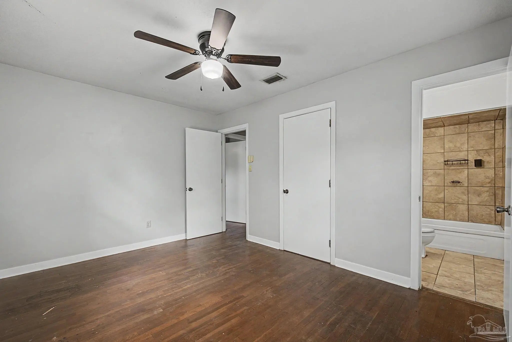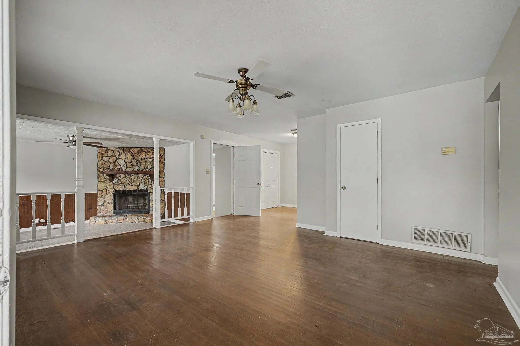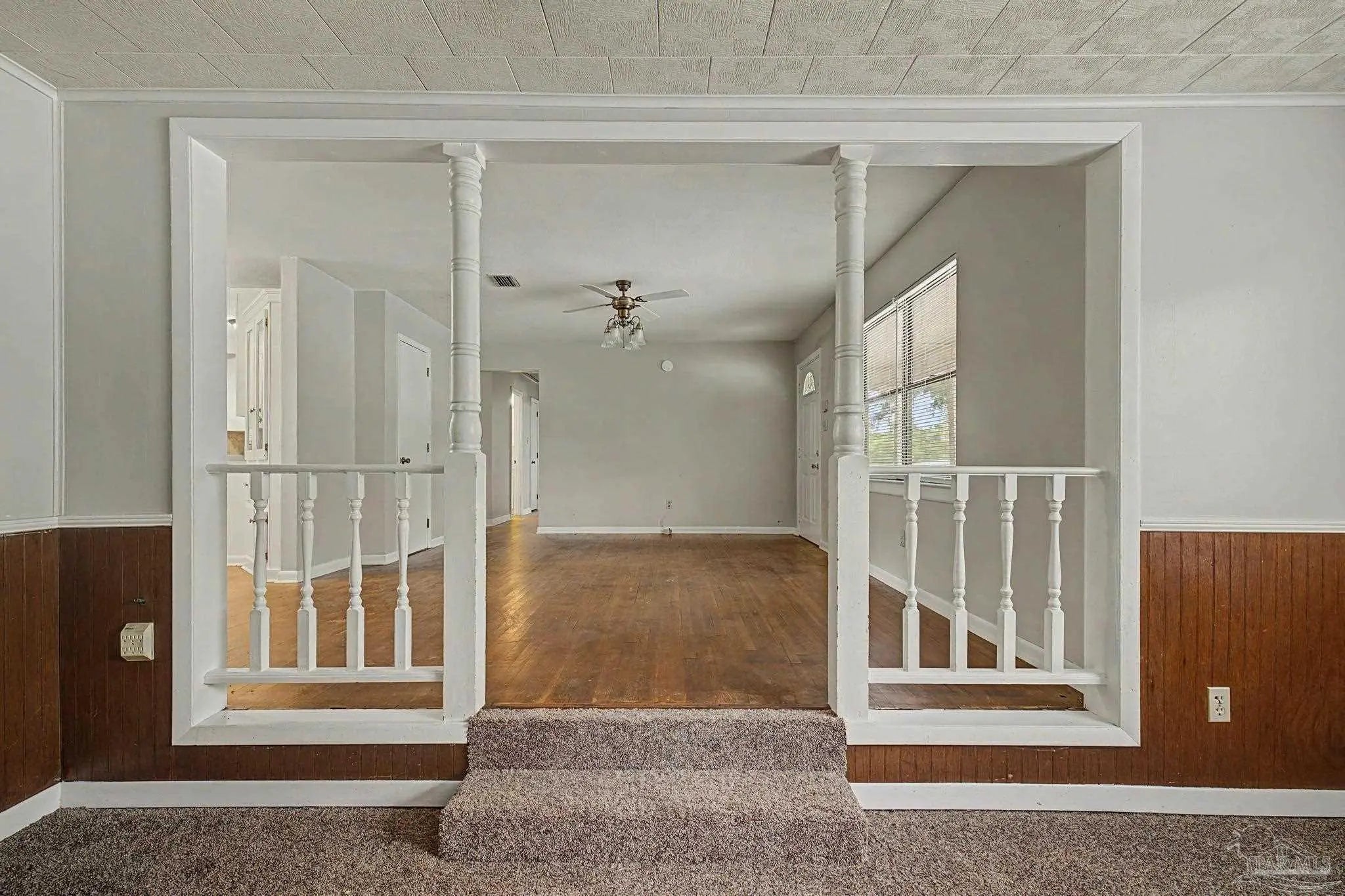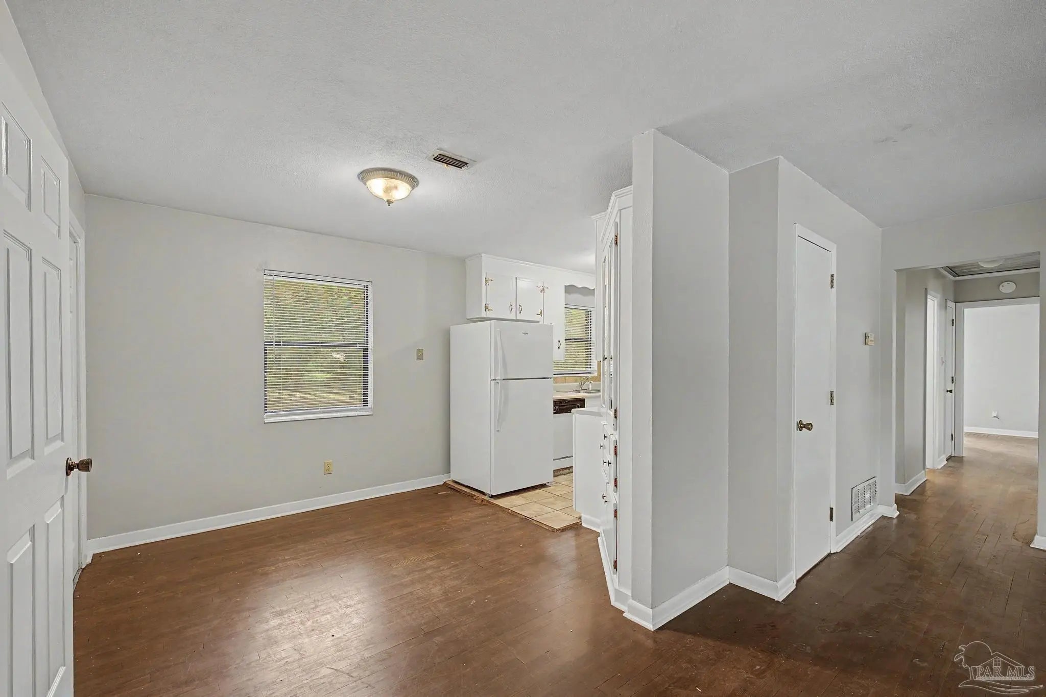 Conveniently located near shopping, restaurants, NAS Pensacola, and everyday amenities, this 3-bedroom, 2-bath home offers a functional layout with multiple living spaces. The main living room is complemented by a separate den, providing flexibility for a second sitting area, home office, or entertainment space. Hardwood flooring runs through the living areas and bedrooms, while the kitchen features tile flooring for easy maintenance. The interior has been refreshed with updated paint, and ceiling fans are installed in all bedrooms for added comfort. An inside laundry area adds everyday convenience, and a new roof installed in July 2025 provides long-term value and peace of mind. Schedule your showing today to see all this home has to offer.